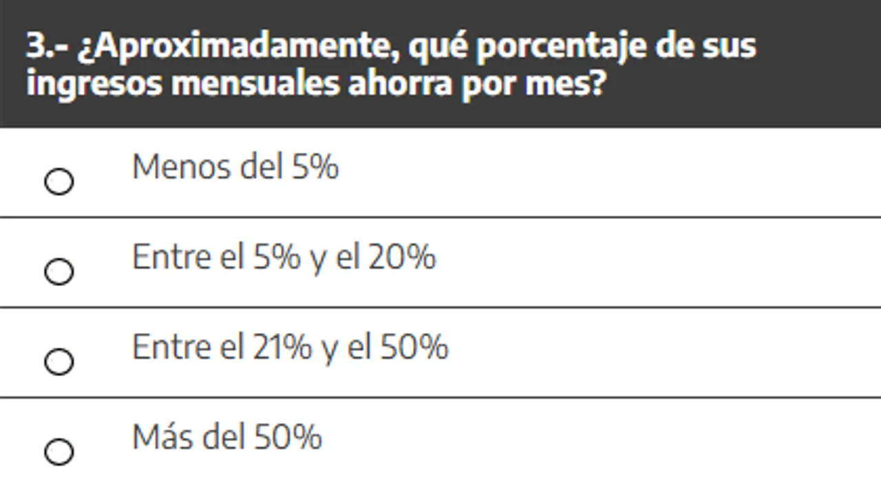- Aproximadamente, ¿qué porcentaje de sus ingresos mensuales ahorra?