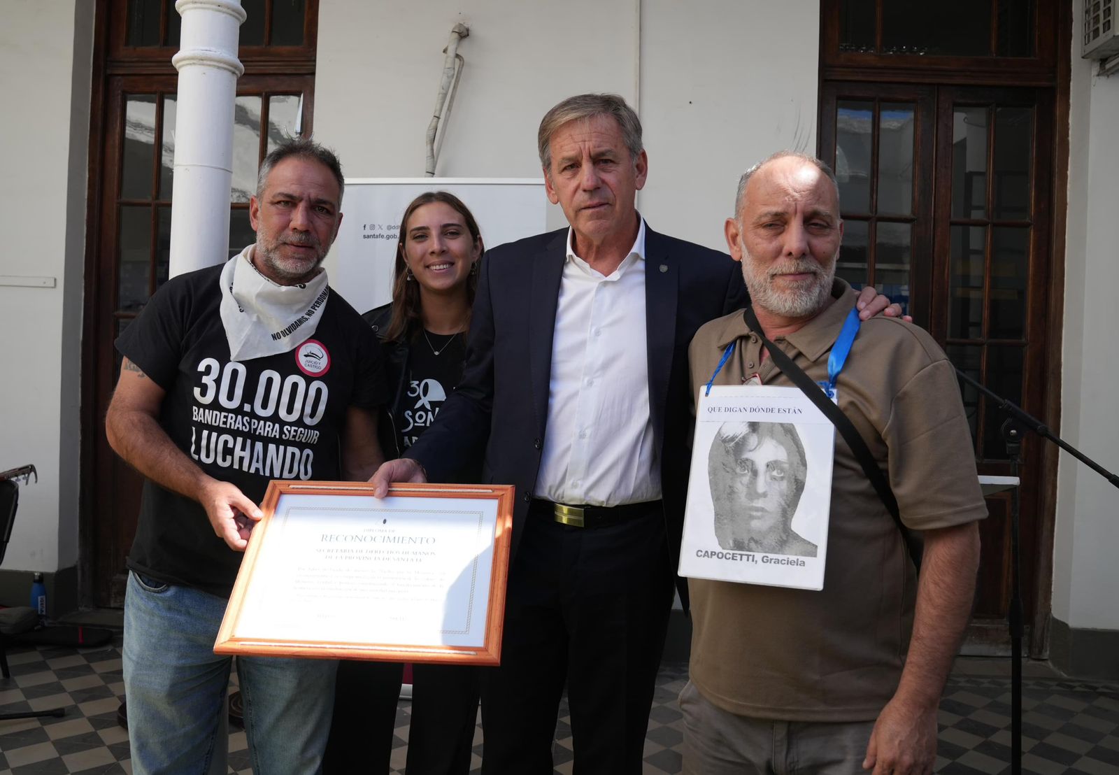 El acto contó también con la presencia de los ministros de Gobierno e Innovación Pública, Fabian Bastia; y de Economía, Pablo Olivares; del intendente Juan Pablo Poletti; de la presidenta de la Cámara de Diputados y Diputadas de Santa Fe, Clara García; el presidente de la Corte Suprema de Justicia de Santa Fe, Rafael Gutiérrez; el ministro la defensora General del Ministerio Público de la Defensa, Estrella Morena Robinson; el secretario General de la Gobernación de Santa Fe, Juan Cruz Cándido; la rectora de la Universidad Nacional del Litoral, Laura Tarabella; el decano de la UTN Regional Santa Fe, Alejandro Toffolo; en representación de familiares de detenidos y desaparecidos por razones políticas de Santa Fe e integrante del Foro contra la Impunidad y por la Justicia, Hugo Kofman; referentes de organismos de Derechos Humanos; además de otras autoridades nacionales, provinciales y locales; y representantes de instituciones públicas santafesinas.