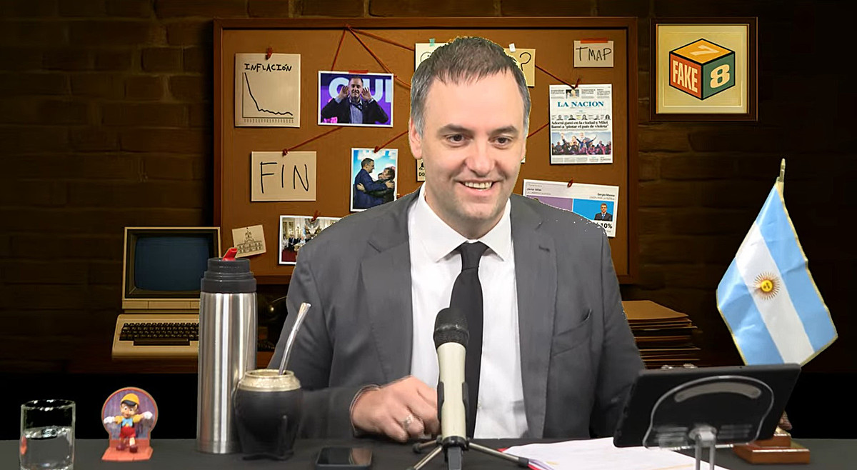 El vocero presidencial Manuel Adorni condujo hoy el primer envío de «Fake-7-8», un programa que se transmitió en vivo por su cuenta personal de YouTube, en el que salió a cruzar las que consideró «noticias falsas» que circularon en medios y redes contra el gobierno de Javier Milei.