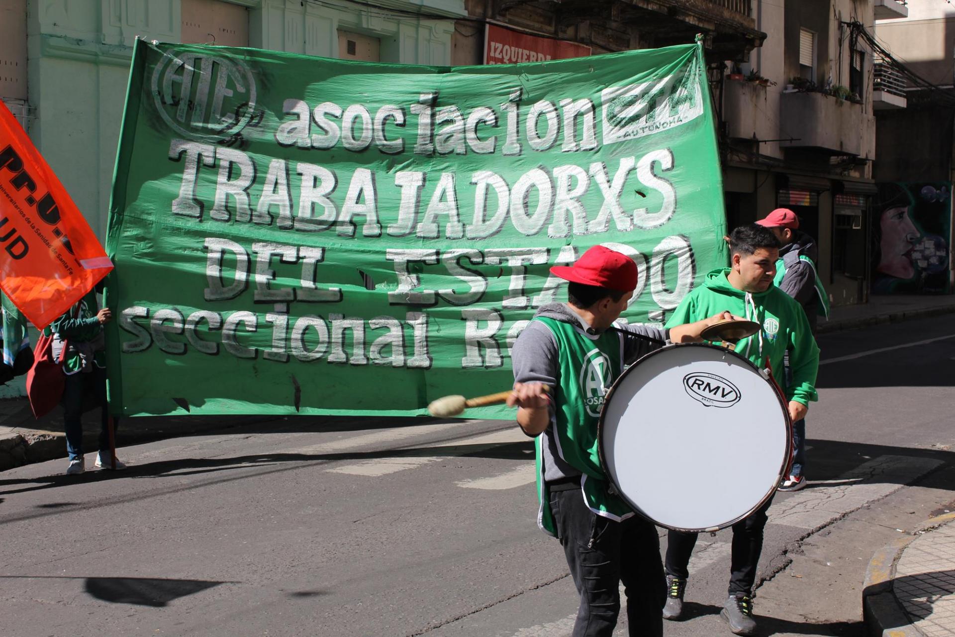 La Asociación de Trabajadores del Estado (ATE) llevó adelante un paro nacional este martes 21 de abril. La seccional Rosario adhirió a la medida nacional con acciones sectoriales, tanto dentro de los lugares de trabajo, como en espacios públicos de la ciudad.