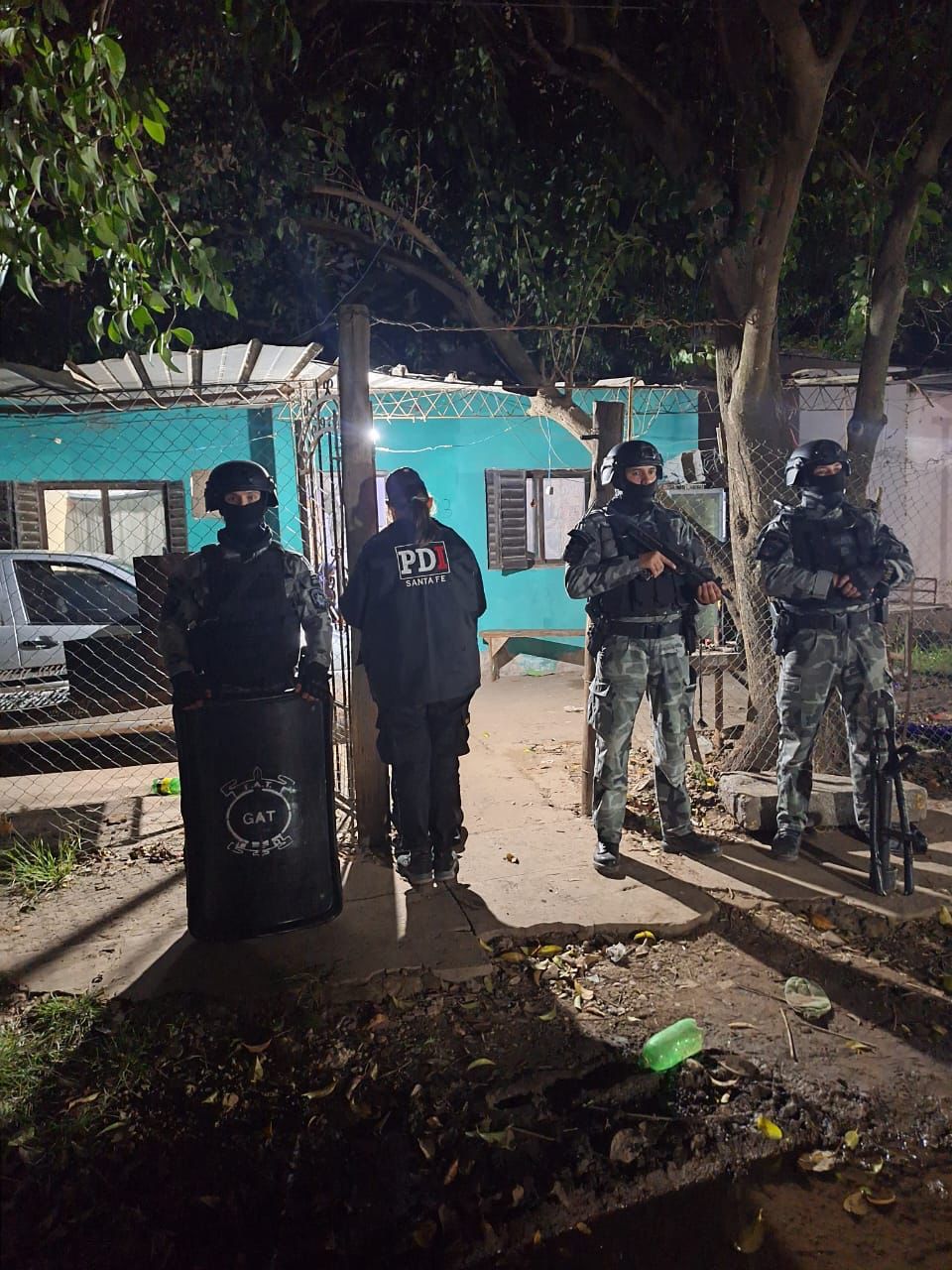 La Policía de Investigaciones (PDI) y grupos de irrupción de la Policía de Santa Fe, fuerzas dependientes del Ministerio de Justicia y Seguridad, llevaron a cabo anoche múltiples allanamientos en la ciudad de Capitán Bermúdez en los que detuvieron a tres personas y secuestraron elementos de interés para una causa de abuso de arma y presunta comercialización de drogas en Granadero Baigorria. Por el mismo caso, la semana pasada fue detenido un joven durante una serie de procedimientos en la última localidad mencionada.