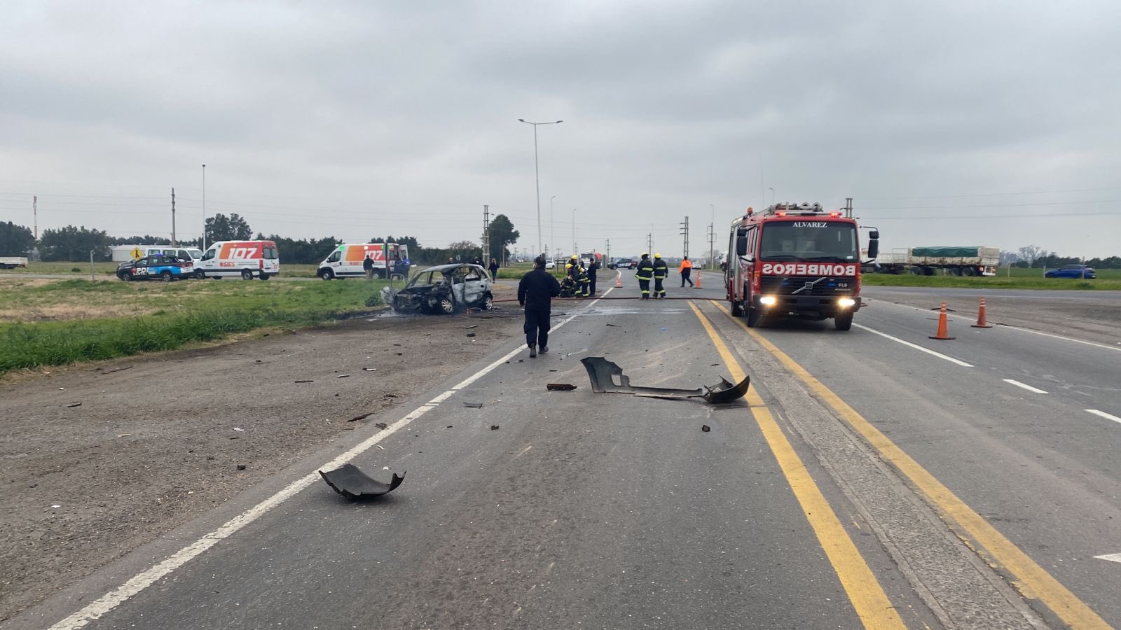 Regionales Tragedia vial en Piñero: una mujer murió tras chocar un auto con un camión y prenderse fuego Monday 18 de August de 2025
