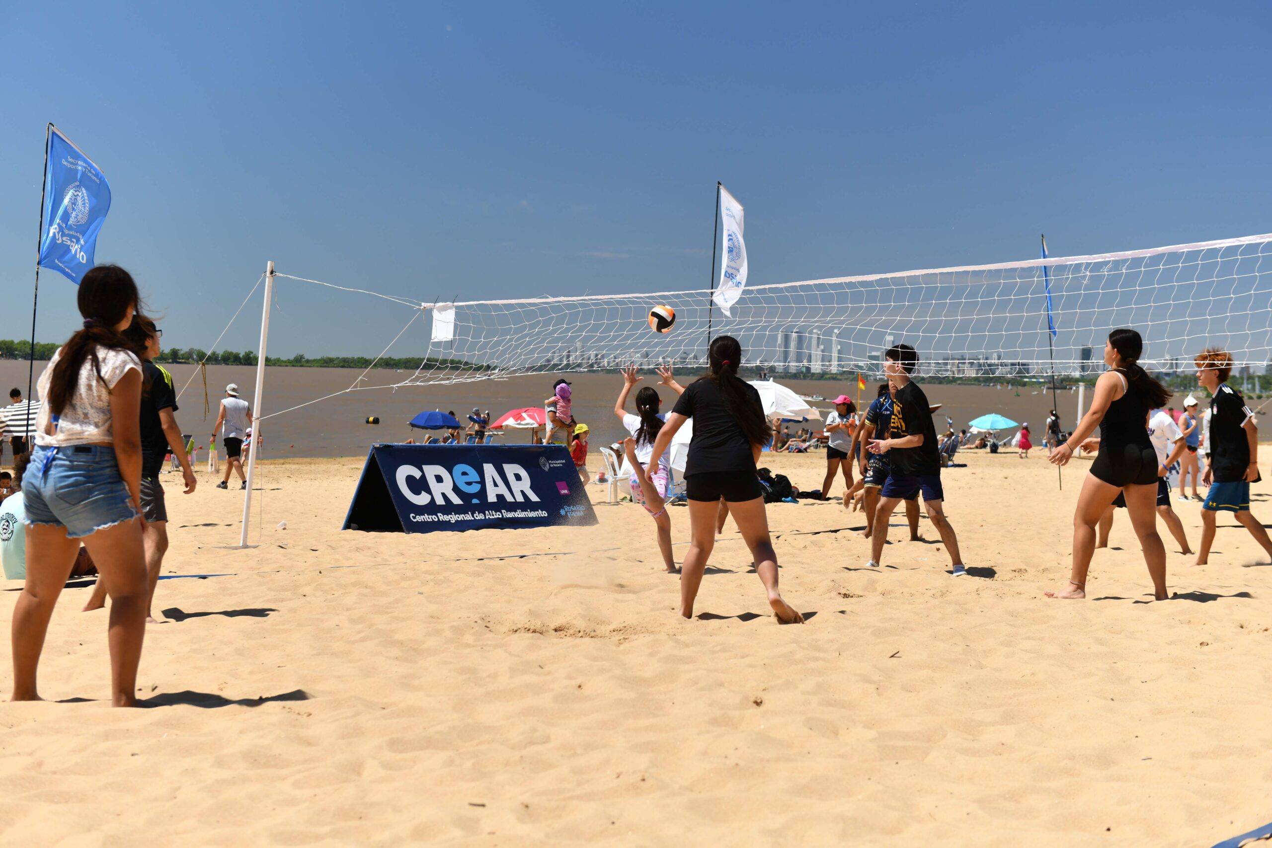 En este contexto, grupos de chicas y chicos provenientes de los diferentes polideportivos municipales, como de los espacios de movimiento de la ciudad, coparon las diversas canchas que estuvieron desplegadas estratégicamente sobre la arena de la playa. Allí pudieron exhibir sus respectivas habilidades al aire libre frente a una multitud que congregó este encuentro especial a la vera del río Paraná. Hubo partidos de básquet, vóley, hockey y rugby.