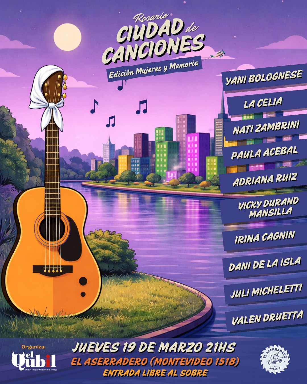 El encuentro se llevará a cabo en El Aserradero (Montevideo 1518) y contará con la participación de diez mujeres músicas en escena, que interpretarán canciones propias en un formato íntimo y comprometido. La modalidad será a la gorra consciente, promoviendo el acceso a la cultura y el acompañamiento al trabajo artístico independiente.