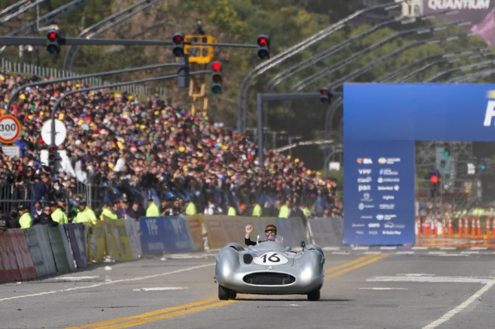 Durante el show a bordo de la “Flecha de Plata”, Colapinto no solo pudo saludar a la gente, que estaba visiblemente emocionada por ver uno de los autos más emblemáticos de la carrera de Fangio, sino que también cumplió el sueño de manejar el monoplaza de uno de sus máximos ídolos.