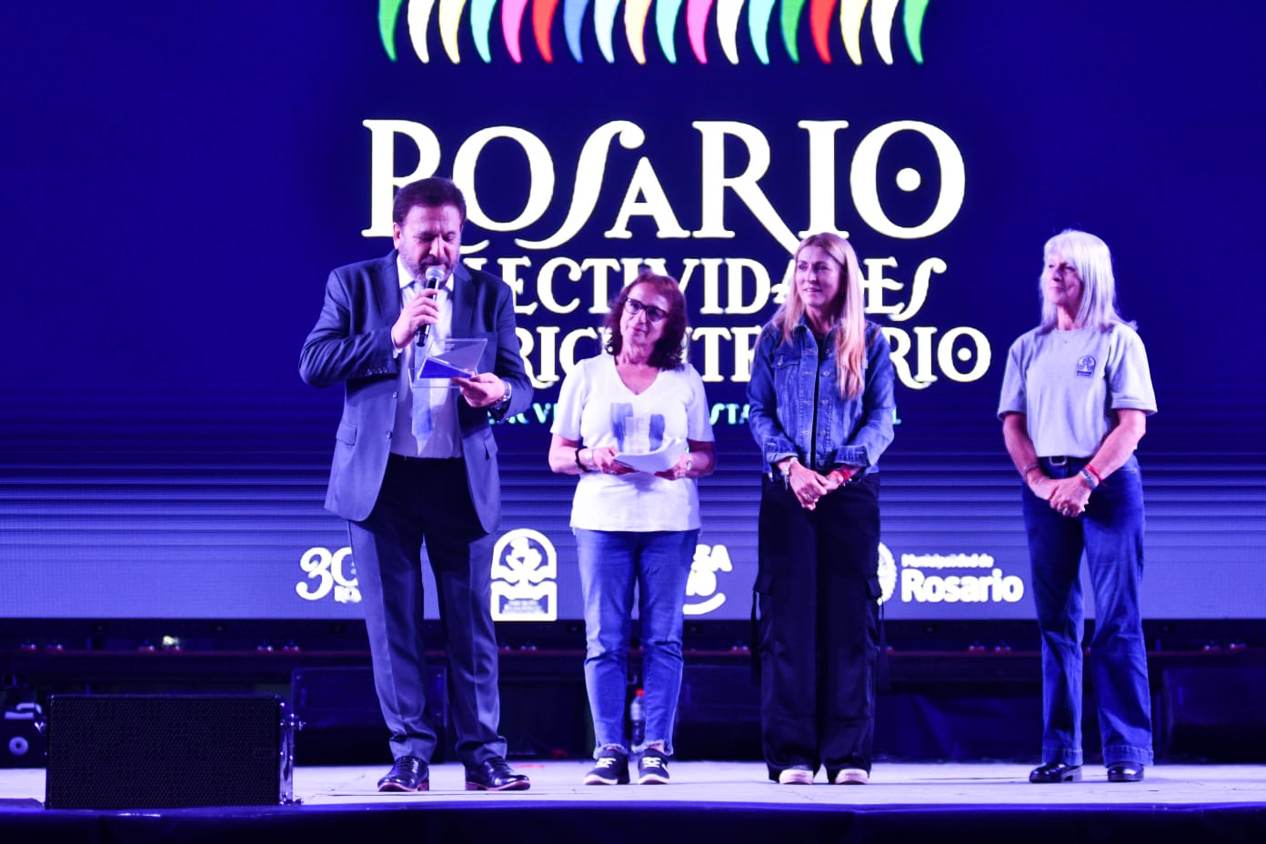 La noche del domingo también tuvo otro momento emotivo. En la previa a la elección de embajadores, se realizó un sentido reconocimiento a quien cumpliera 40 años siendo la voz de Colectividades: Alberto Lotuf. El distinguido periodista rosarino es uno de los que ha estado siempre presente en la Fiesta de Colectividades, acompañando cada paso de esta historia de convivencia y diversidad cultural.