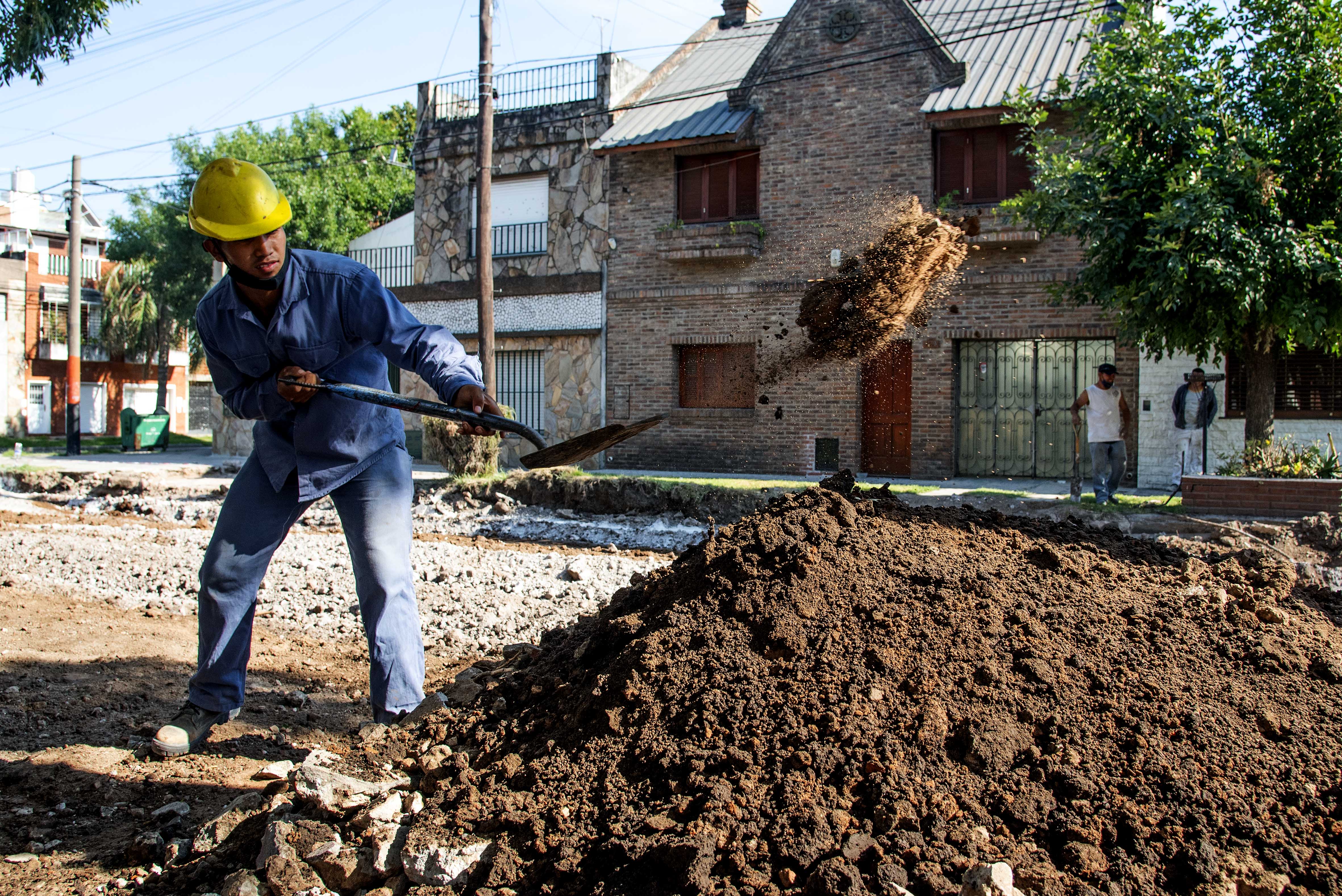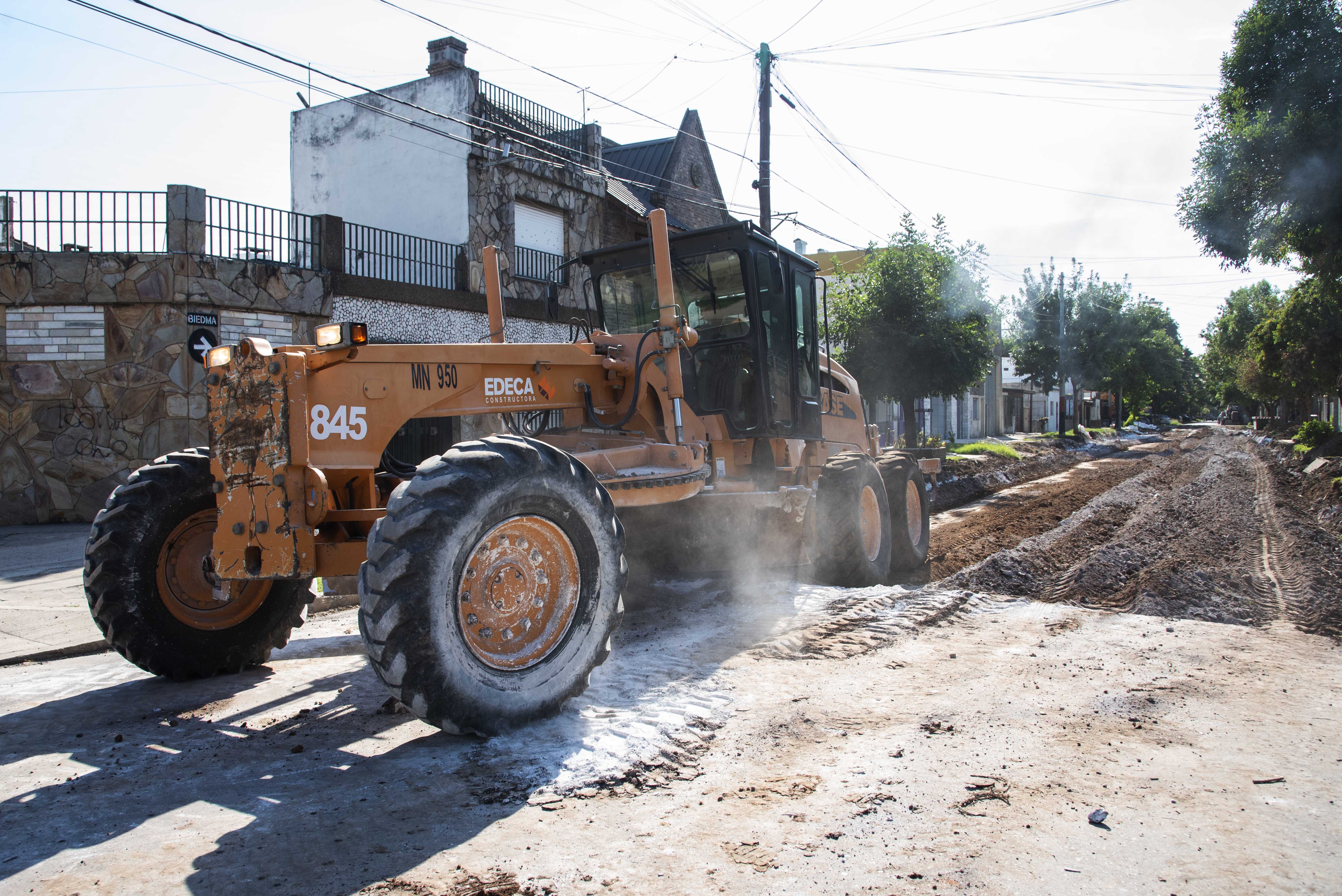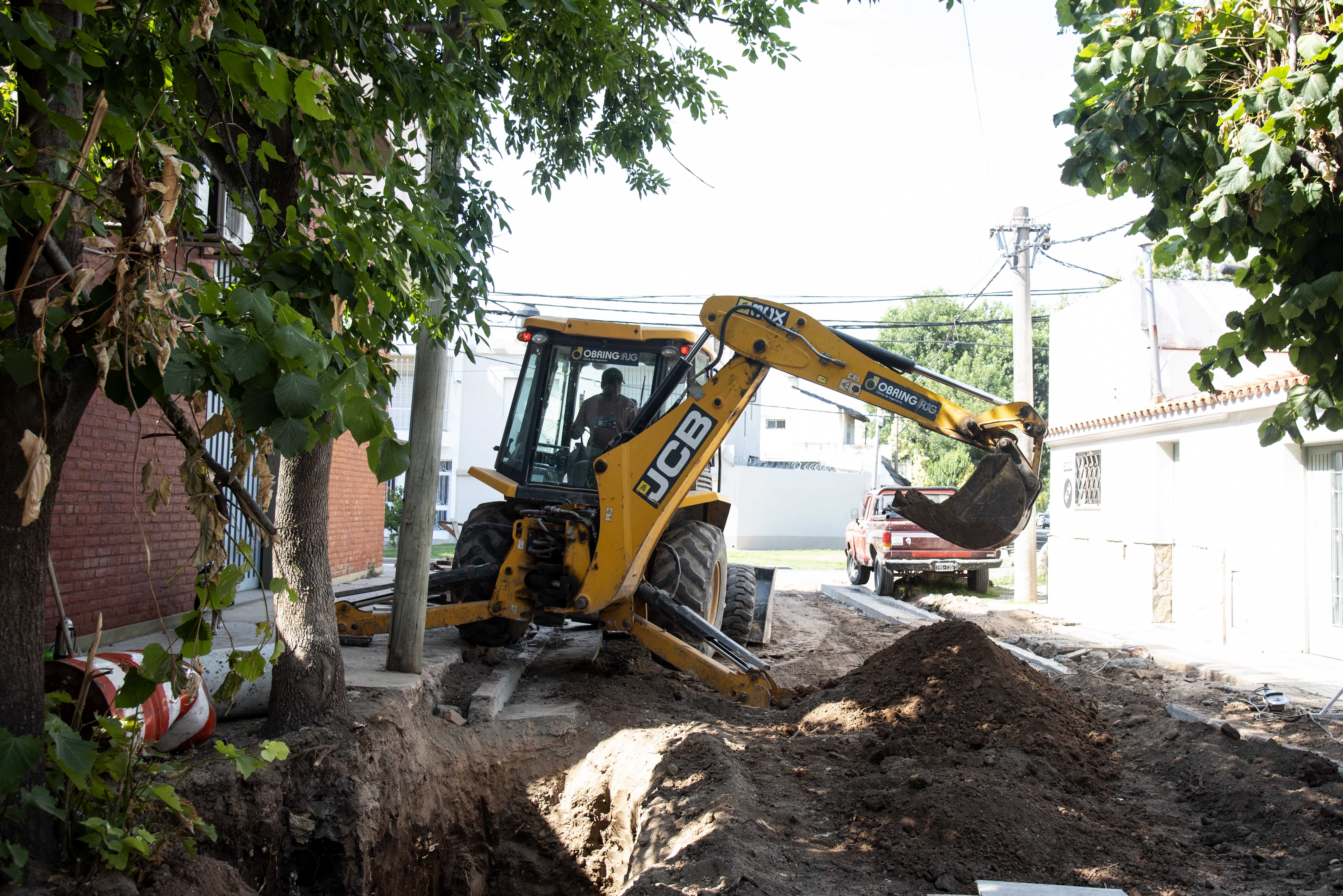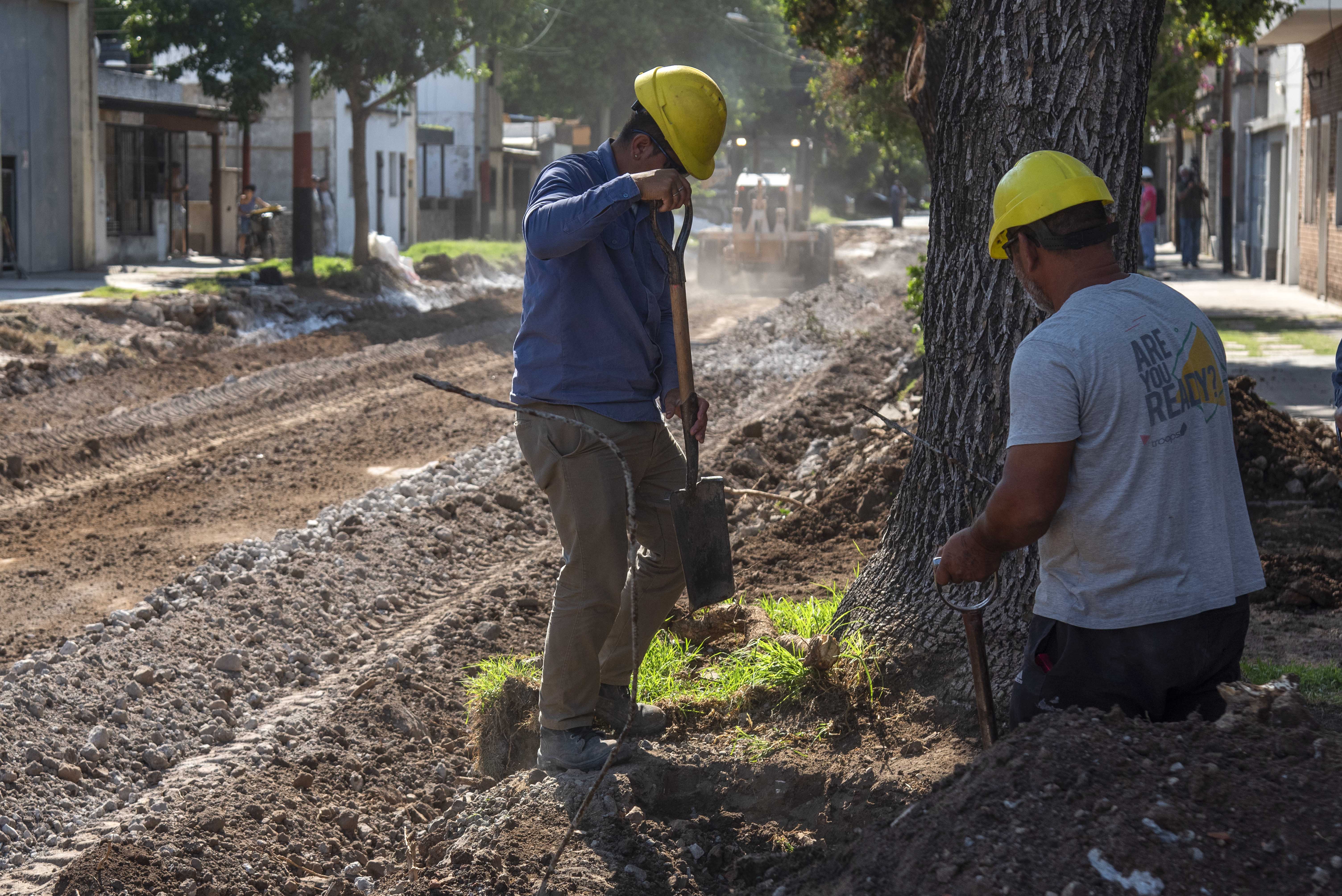 El sector está siendo intervenido de manera integral con trabajos de pavimentación definitiva que, además de los desagües pluviales, contemplan la ejecución de cordones cuneta y la construcción de rampas de accesibilidad.
