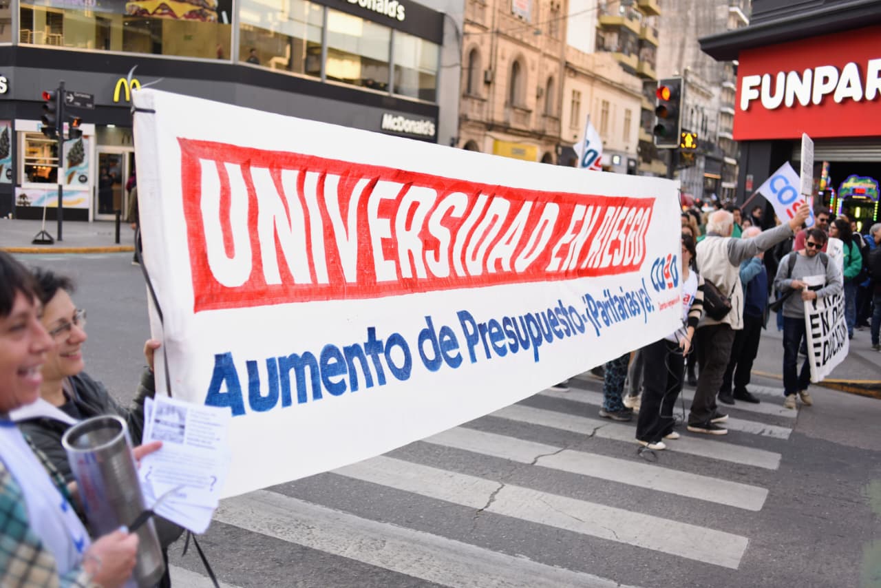 Este miércoles por la tarde, en la esquina de Corrientes y Pellegrini, se llevó a cabo un “ruidazo” en el marco del paro nacional de 48 horas que afecta a todas las sedes del país. La protesta formó parte de una convocatoria nacional en reclamo por la aprobación urgente de la ley de financiamiento de la educación universitaria y ante la falta de definiciones sobre becas, contrataciones y el futuro del personal científico.