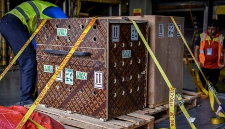 Cajas especiales, supervisión veterinaria y un representante de bienestar animal acompañante minimizaron el estrés durante el vuelo.