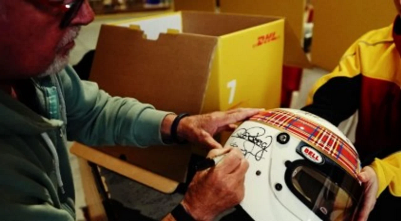 Bajo estrictas medidas de seguridad, DHL transportó el casco desde Suiza hasta los hogares de varios campeones para que pudieran añadir sus firmas.