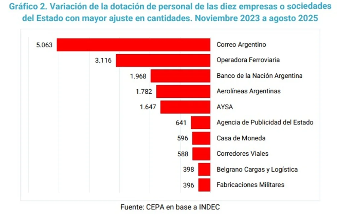 El Centro CEPA lo atribuye a “la política deliberada de ajuste y desmantelamiento del sector público nacional, con un impacto masivo tanto en la dotación de personal como en las capacidades operativas del Estado”.