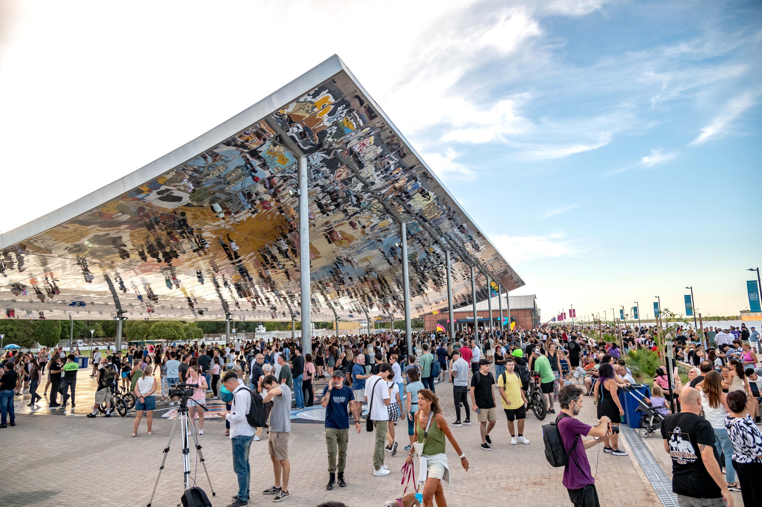 Con una desbordante convocatoria que superó todas las expectativas, este viernes 27 de febrero quedó oficialmente habilitada Costa Nueva, el flamante paseo frente al río Paraná que integra cultura, juventudes y tecnología en uno de los sectores más emblemáticos de la ribera rosarina. El trayecto suma 1.000 metros lineales y abarca desde La Fluvial hasta el Parque España e incluye la flamante cubierta reflectante, El Aura del Tricentenario, un novedoso espacio con múltiples usos y un atractivo único que se complementa con un extenso mural sobre el suelo ubicado entre los galpones 13 y 15.