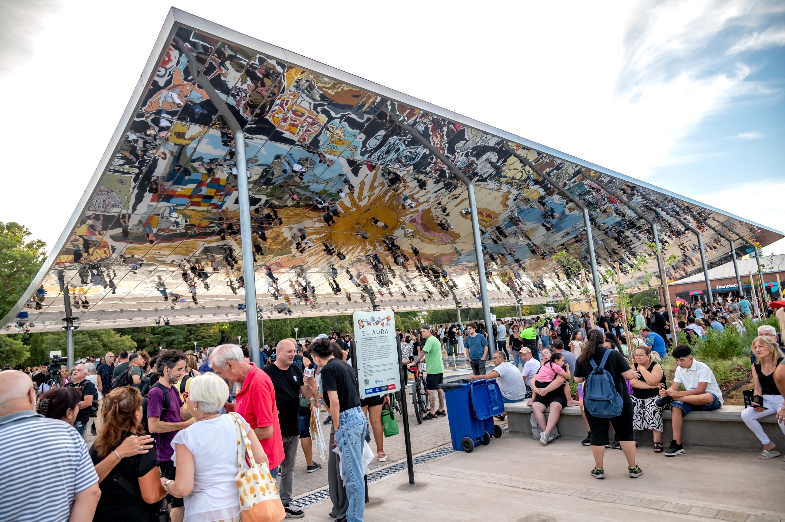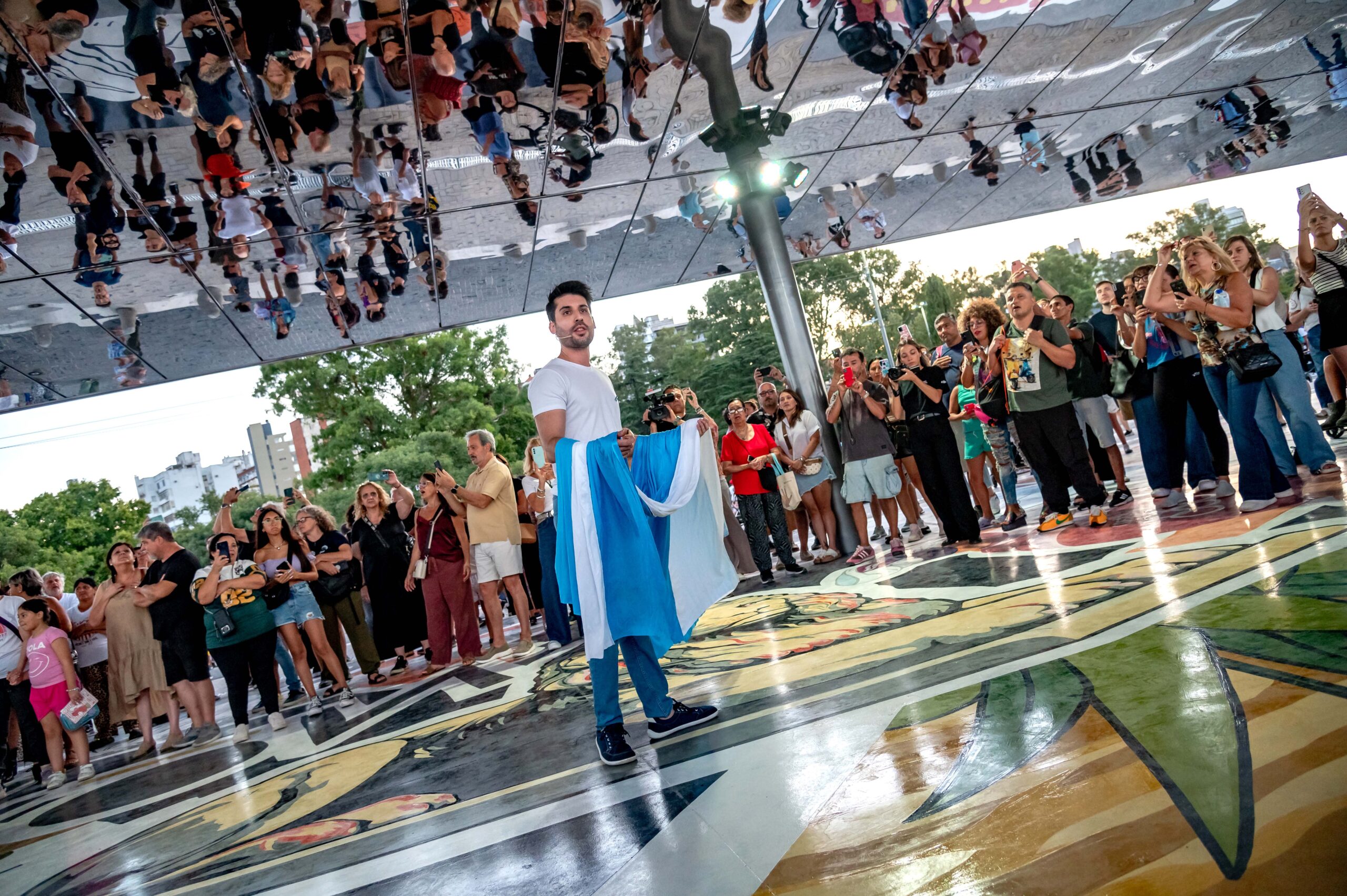 Se trata de una cubierta refractaria de más de 2.000 metros cuadrados que refleja un gigantesco mural que propone una experiencia activa donde la ciudad se revela al ser mirada. Diseñada por el reconocido muralista Martín Ron y plasmado por más de 15 artistas locales, la superficie del piso ostenta un dibujo que, lejos de proponer una imagen única de la ciudad, una composición de múltiples partes.