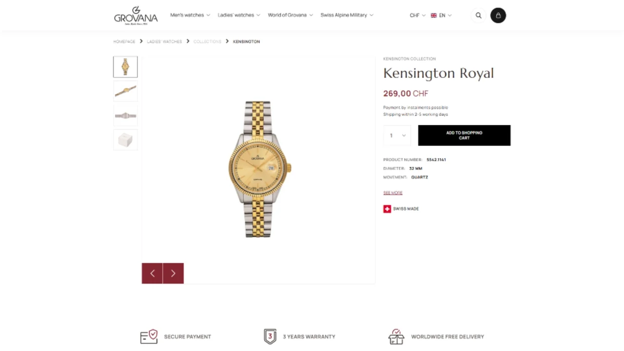 El modelo Kensington Royal de Grovana, similar al que luce la secretaria de la Presidencia, es un reloj de gama media de la industria suiza. De acuerdo a la información del fabricante, cuenta con componentes de alta calidad.