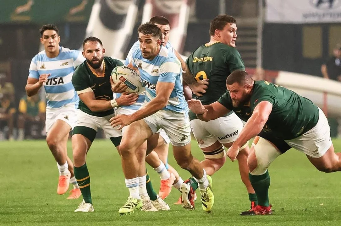 Los tries comenzaron a aparecer: Malcolm Marx apoyó primero para Sudáfrica, pero Santiago Chocobares respondió con un try argentino convertido por Carreras. La paridad se mantuvo hasta el cierre del primer tiempo, cuando Feinberg-Mngomezulu apoyó su segundo try tras un error argentino, dejando a los locales arriba 25-23 al descanso.