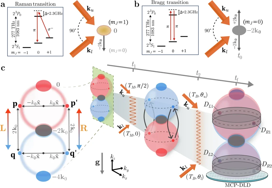 Cuando los átomos colisionaron, no se comportaron como objetos clásicos que simplemente rebotan tras un choque. En lugar de salir despedidos en una única dirección, los átomos siguieron varias trayectorias posibles al mismo tiempo, cada una asociada a un momento distinto. Mientras caían bajo el efecto de la gravedad, atravesaban un dispositivo llamado interferómetro Rarity-Tapster, que permitía medir su momento antes de que finalmente impactaran en un detector.