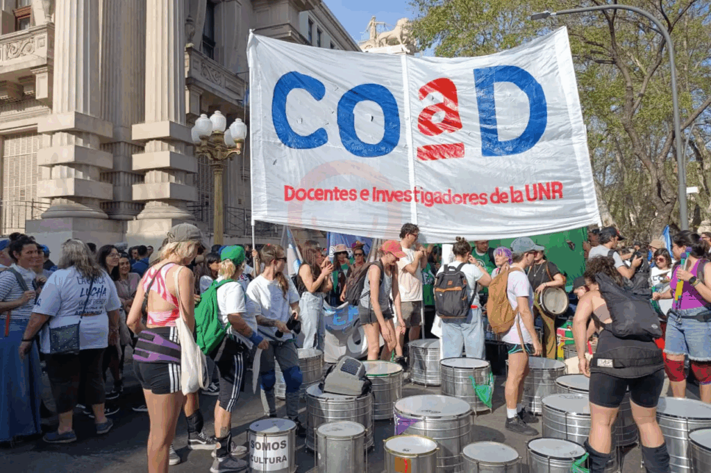 Desde la Asociación Gremial de Docentes e Investigadores de la UNR (Coad) declaró: “Esta ley, que de forma ilegal el Gobierno de Milei incumple, fue aprobada 3 veces por el Congreso Nacional”.