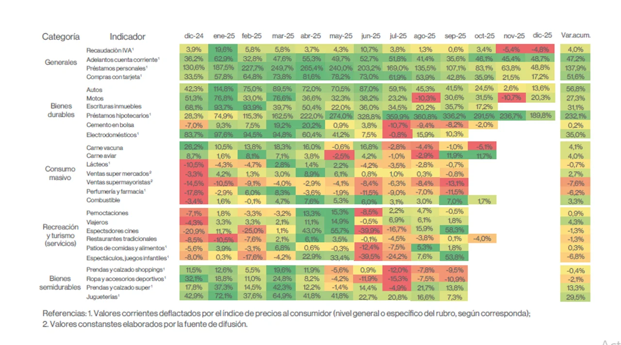 El consumo privado se desaceleró en los últimos cinco meses de 2025, pero de todas maneras creció más de 10% con relación al mes anterior, y volvió a los niveles de 2022/2023, según datos de un estudio privado.
