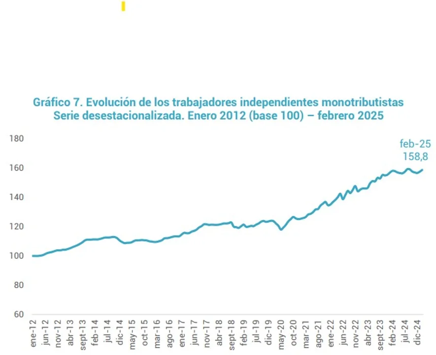 La reflexión sobre estos datos que formula Centro CEPA es que con la reforma laboral aprobada en el Congreso (Ley Bases), esta categoría podría adquirir especial relevancia en los próximos años: se crea una figura nueva, que permite que puedan contratarse hasta tres trabajadores en relación de dependencia pero bajo la categoría de “colaboradores”, es decir, monotributistas.