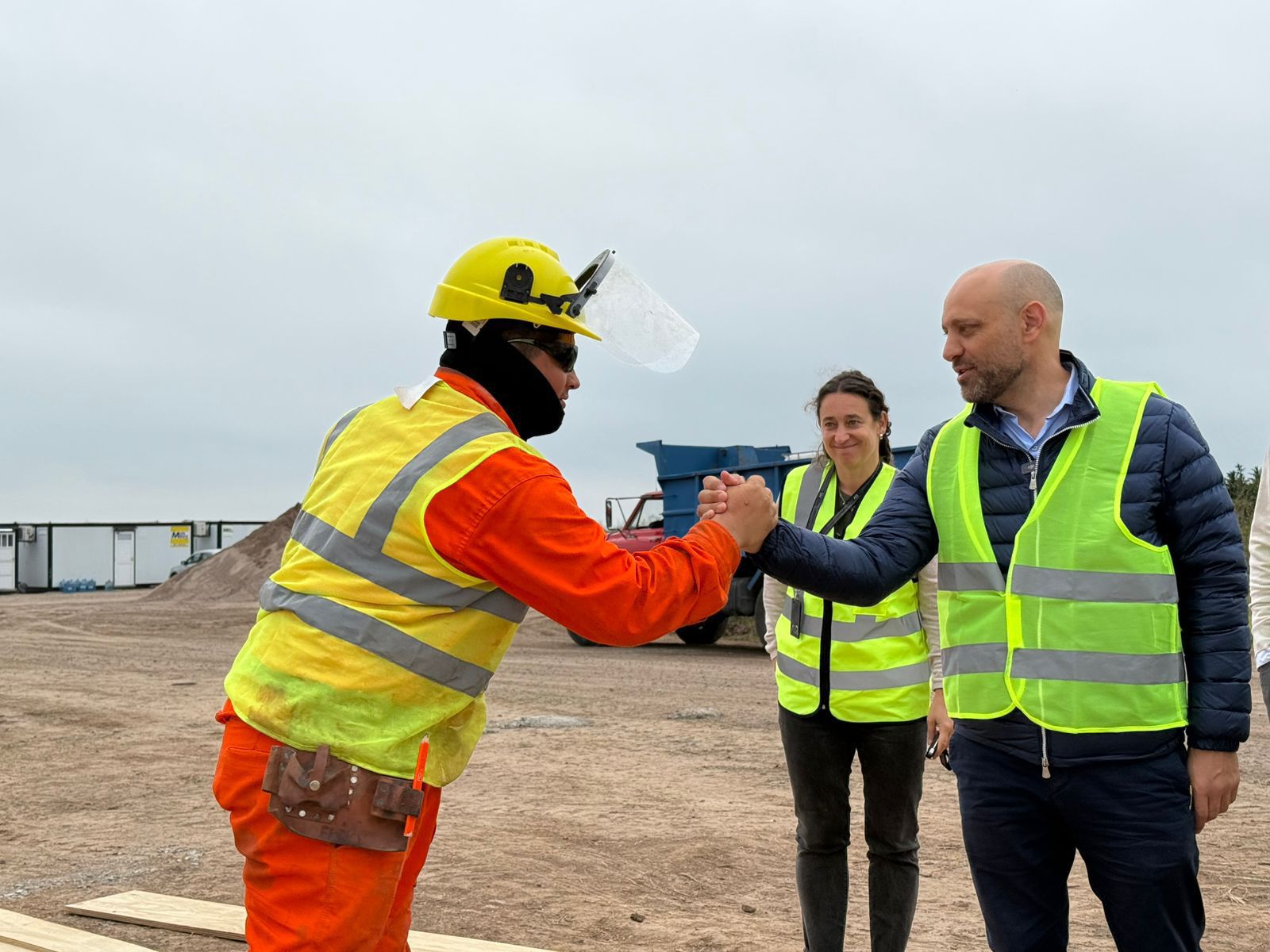 Acompañado por la secretaria de Transporte y Logística, Mónica Alvarado, el gerente general del AIR, Juan Pio Drovetta, y parte del directorio -Esteban Bretto y Pedro Giantenaso-, estuvieron junto al equipo de ingenieros que llevarán adelante la obra junto a la empresa Obring S.A.