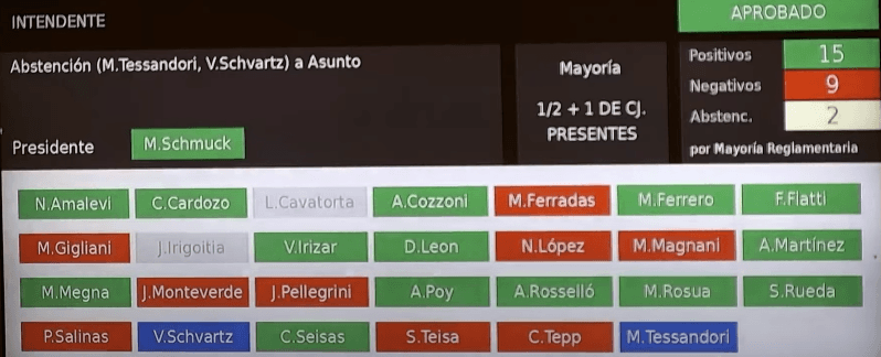 Votaron favorablemente los bloques Arriba Rosario, Socialista, Rosario Progresista, Unión Pro/Juntos por el Cambio, Unión Cívica Radical/Juntos por el Cambio, Partido Demócrata Progresista y Unión Cívica Radical, y Un Gol para Rosario. En contra lo hicieron Ciudad Futura, Todos Hacemos Rosario, Frente de Todos-PJ e Iniciativa Popular.