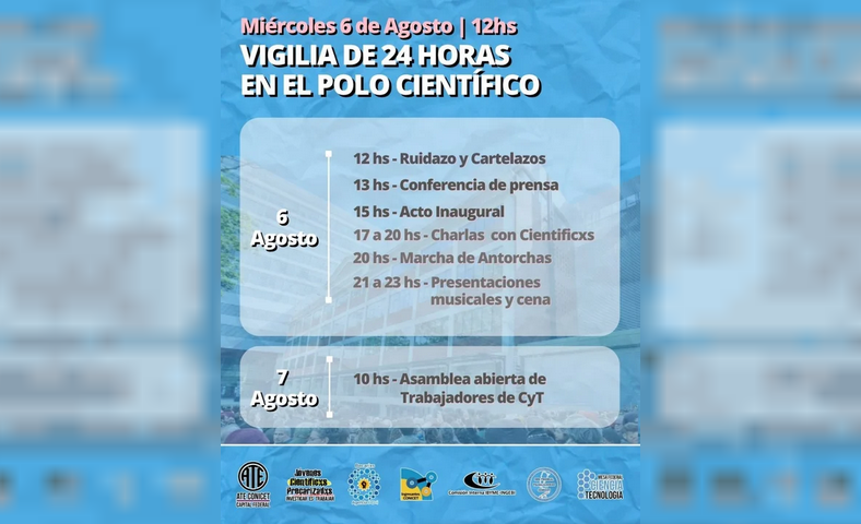 Según supo Noticias Argentinas, la medida de fuerza, impulsada por ATE y otras agrupaciones científicas, busca reclamar por mejoras salariales, el freno al ajuste presupuestario y la defensa de la ciencia pública.