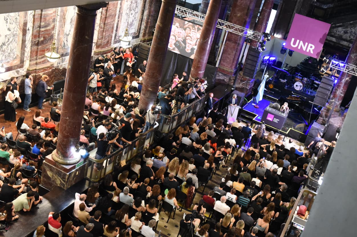 ¡Fito, Fito!”, aclamó una y otra vez la multitud acalorada que abrazó al músico rosarino en una noche muy especial para él y para la comunidad de la Universidad Nacional de Rosario (UNR). A pura emoción, palabras dulces y canciones, Rodolfo “Fito” Páez recibió la distinción máxima que la Universidad puede entregar: el título de Doctor Honoris Causa. Se lo dedicó a su tía Charito y a su mamá Margarita a las que -aseguró- les hubiese encantado verlo recibir un título universitario. E invitó a defender la condición humana: “No van a hacer un Spinetta, una Liliana Herrero por IA”.