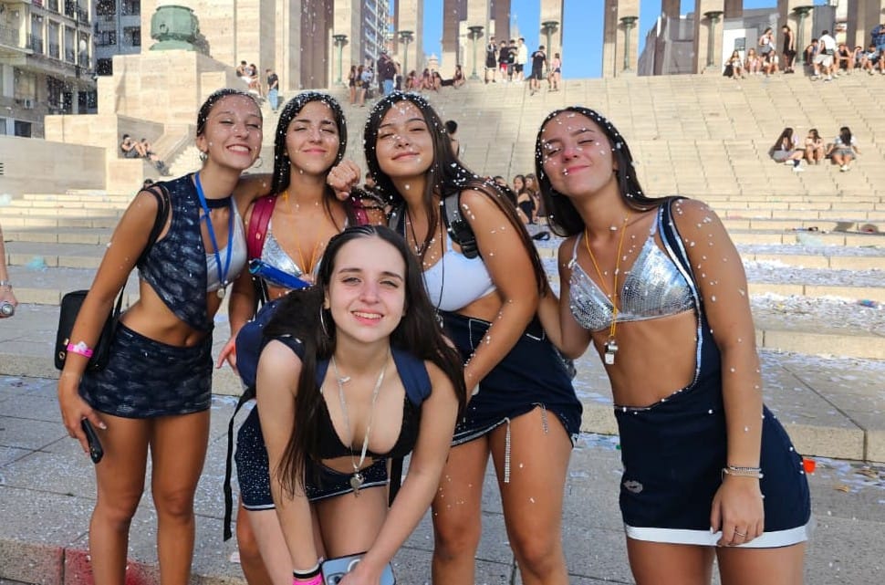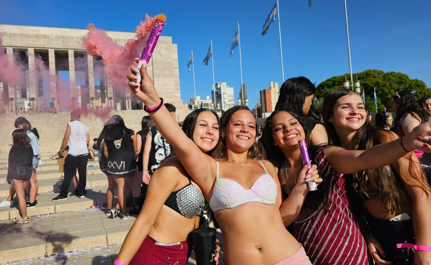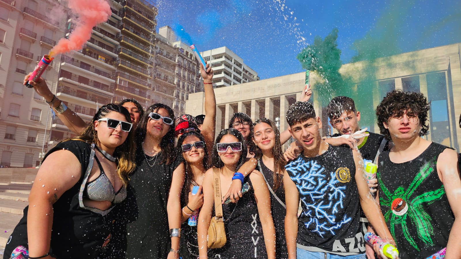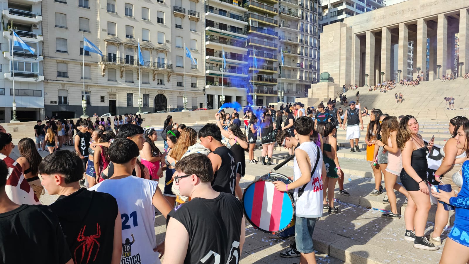 Estudiantes de cuarto año celebran el ya clásico Banderazo, que es el festejo por el nuevo ciclo, que será el último de la educación secundaria. Y continúan este jueves en el Monumento a la Bandera.