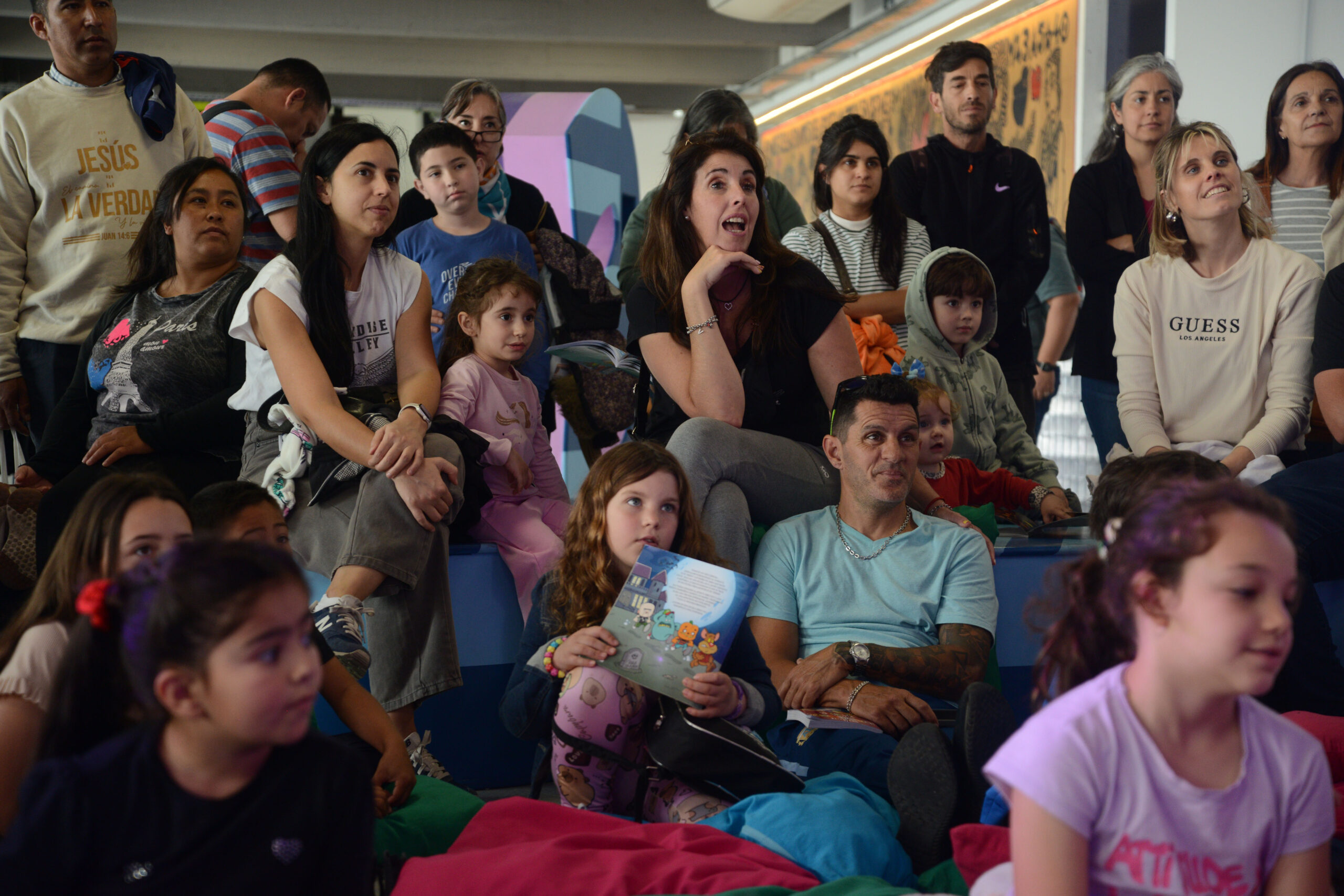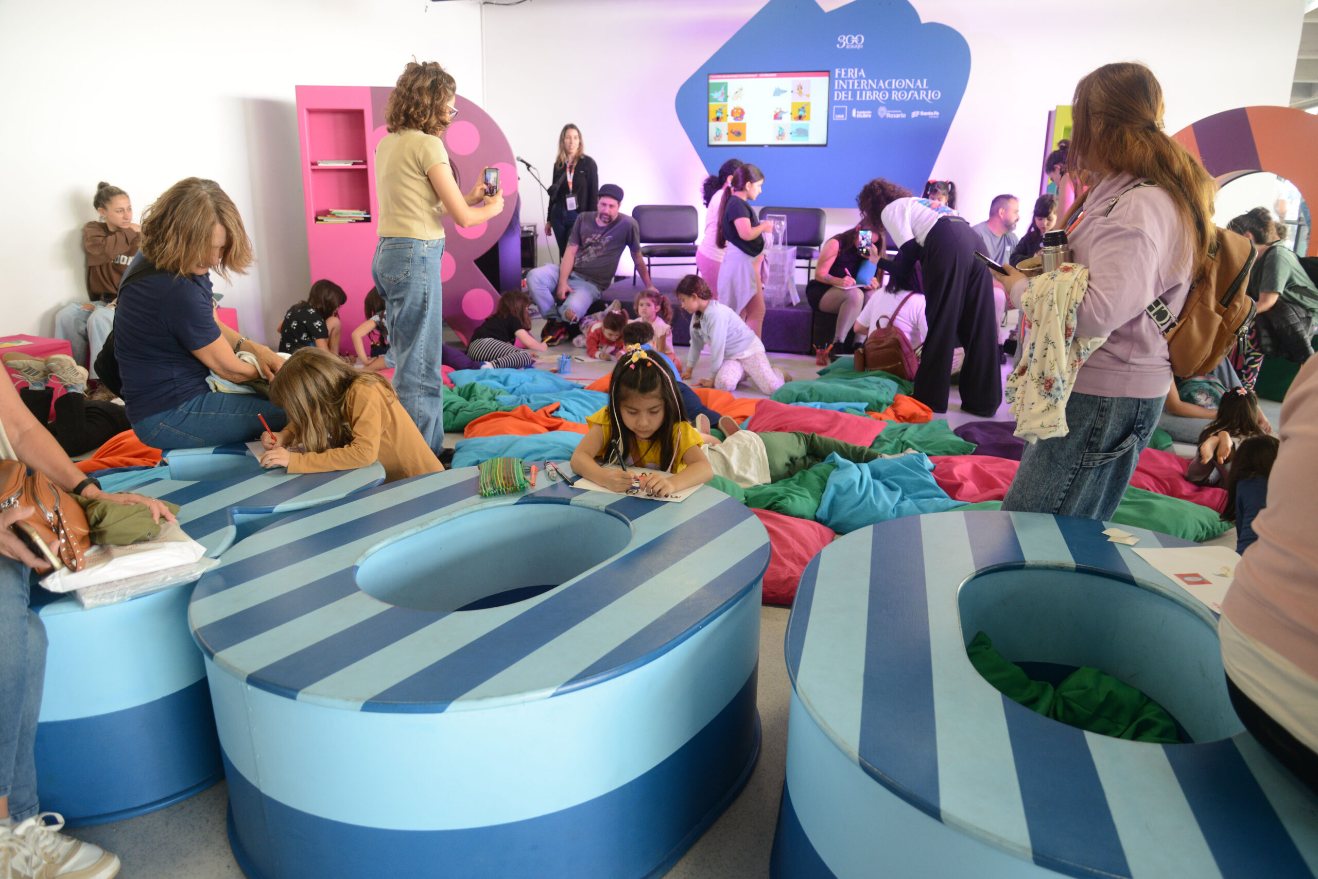 Ubicado en la planta baja y con un diseño que lo conectaba directamente con la explanada, se pensó para que niñas y niños, desde los 0 años, pudieran sumergirse en el mundo de la lectura de manera integral y accesible. Con un área ampliada respecto a ediciones anteriores, ofreció no solo presentaciones especiales a la altura de los más chicos, sino también libros de distintos formatos y edades al alcance de la mano, con un entorno lúdico de almohadones, libros de tela y alfombras, que invitaron a las familias a instalarse y apropiarse del lugar con todo el cuerpo. Sin duda es uno de los ejes centrales del balance de la FILRos.