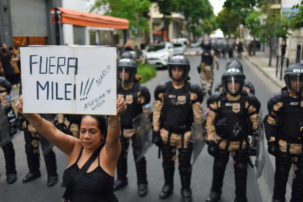 En paralelo, organismos de derechos humanos y gremios de la CTA de los Trabajadores realizaron una concentración en plaza 25 de Mayo, donde también se repudió la presencia del mandatario y se pidió “unidad en defensa de la soberanía y los derechos del pueblo trabajador”.