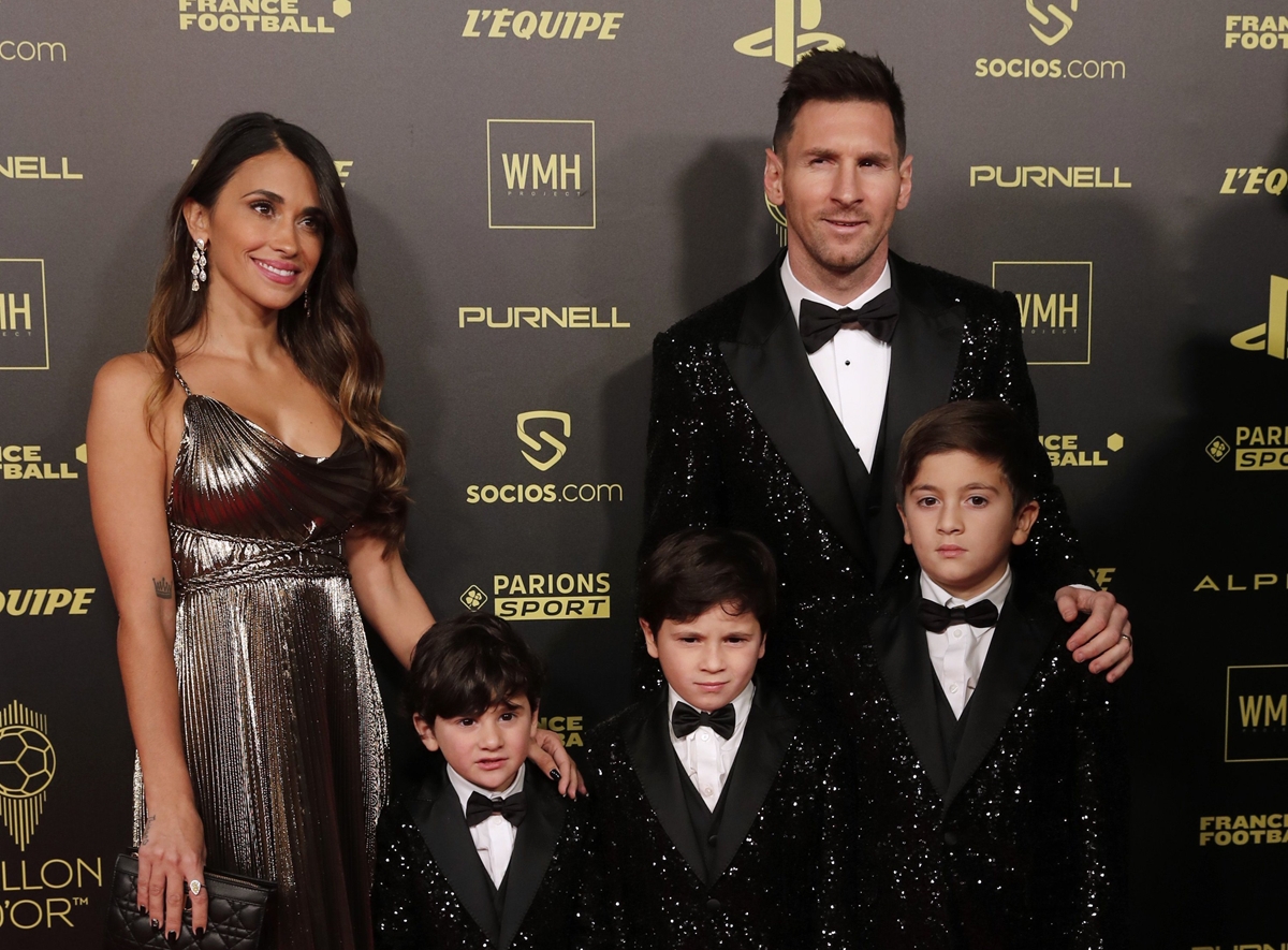 El astro argentino Lionel Messi llegó hoy a la ceremonia del Balón de Oro en París pocos minutos antes de que comience el evento junto a su esposa Antonella Roccuzzo y sus tres hijos, Mateo, Thiago y Ciro, y el look de la familia causó furor en las redes sociales.