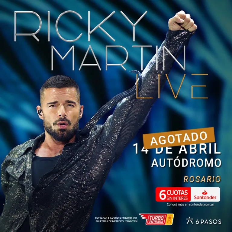 Tras anunciar la semana pasada sus presentaciones del 7 de abril en Montevideo, el 10 de abril en Asunción y el 18 de abril en Buenos Aires, el tour suma ahora una nueva parada el 14 de abril en el Autódromo rosarino. Allí, Ricky Martin volverá a reencontrarse con el público local en una noche que promete ser uno de los eventos internacionales más destacados y convocante del año.
