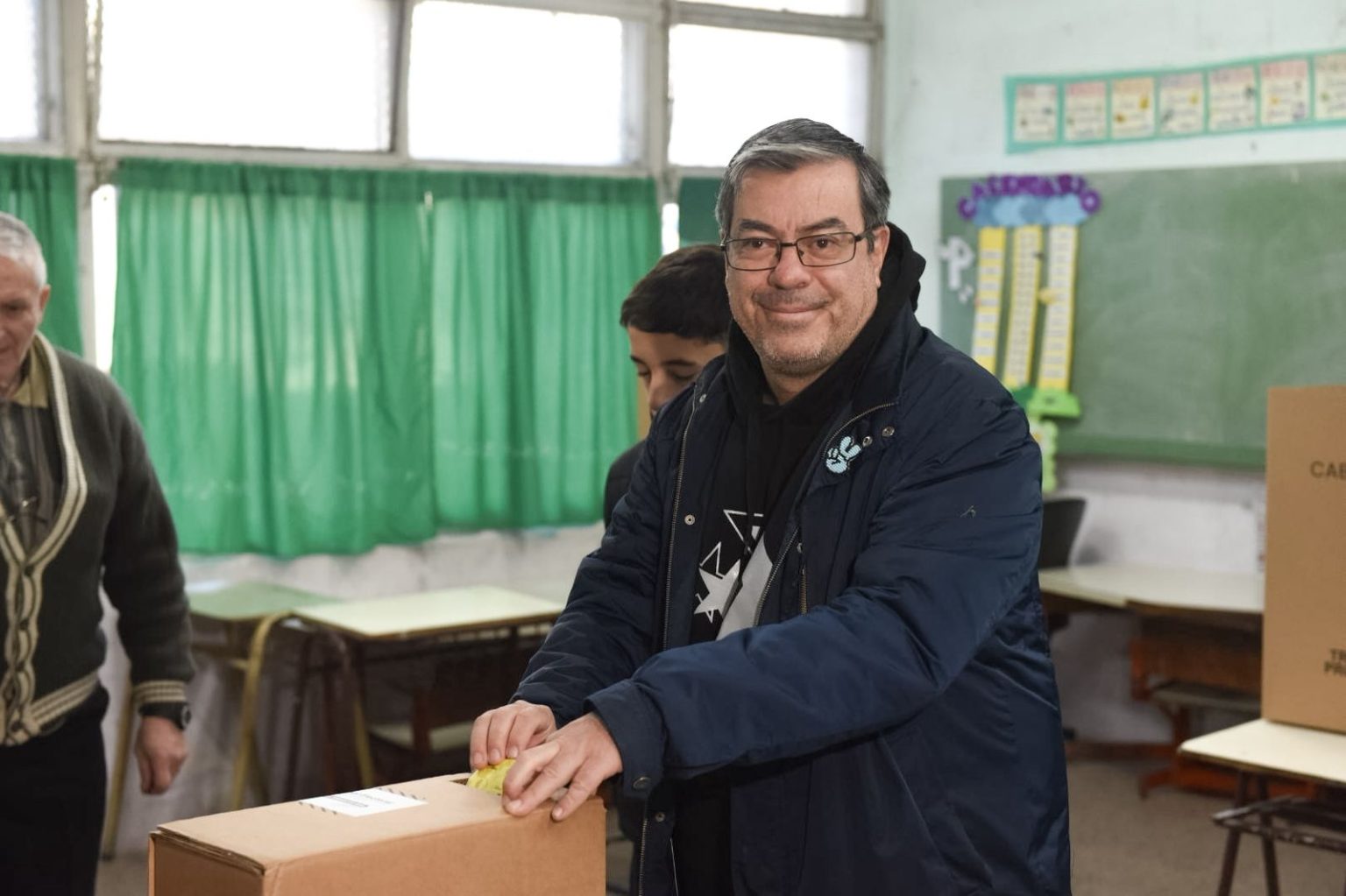 El diputado nacional y jefe del bloque de Unión por la Patria, Germán Martínez, votó este domingo por la mañana en la escuela N°1235 C. C. Vigil, en el marco de las elecciones generales que se celebran en Rosario y otras localidades de la provincia de Santa Fe.