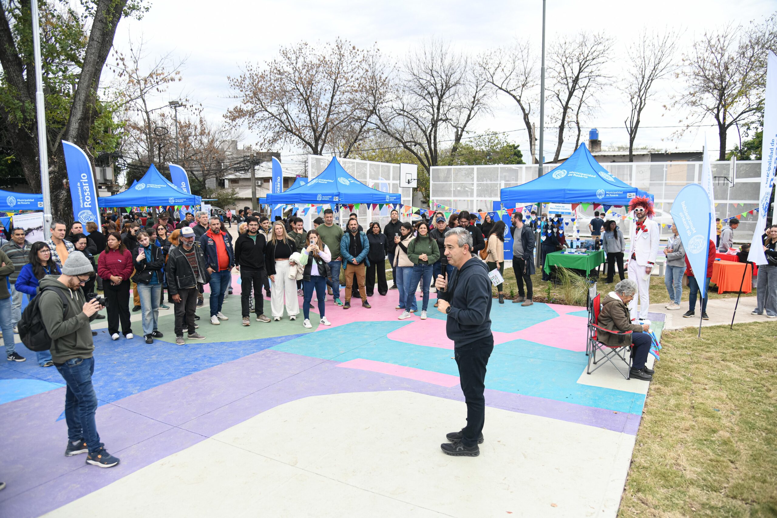 Durante el encuentro, el mandatario destacó: “Hace un año inauguramos la Casa de Cultura Barrio Alvear, un viejo sueño de una familia del barrio que donó el lugar y del Tigre Cavallero, que hizo este centro cultural. Lo recuperamos como él nos lo pidió, lo ampliamos, y dijimos ‘dentro de un año venimos a inaugurar la plaza’. Y acá está la plaza, llena de pibes, iluminada, con juegos, con color, como barrio Alvear merece, como toda la ciudad merece”, para seguidamente afirmar: “En el extremo sudoeste de Rosario, para que la gente buena ocupe los lugares y le gane a la gente mala, como lo prometimos”.