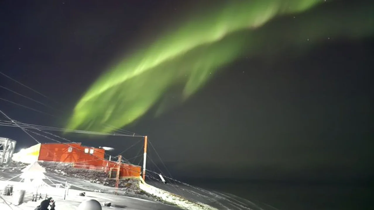 El Servicio Meteorológico Nacional publicó en sus redes sociales diversas fotos donde se logra observar las auroras australes, junto con un video que “capta a la perfección el movimiento de las luces en el cielo, mientras el viento antártico acompaña de fondo la escena”.