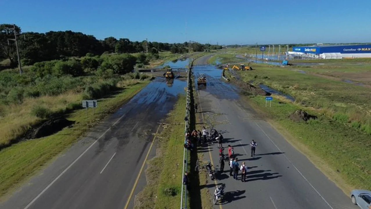 Las imágenes son impactantes. Durante varios metros la ruta y hasta un hipermercado que se encuentra en la zona, que debió cerrar sus puertas, se vieron inundados de los efluentes.__IP__