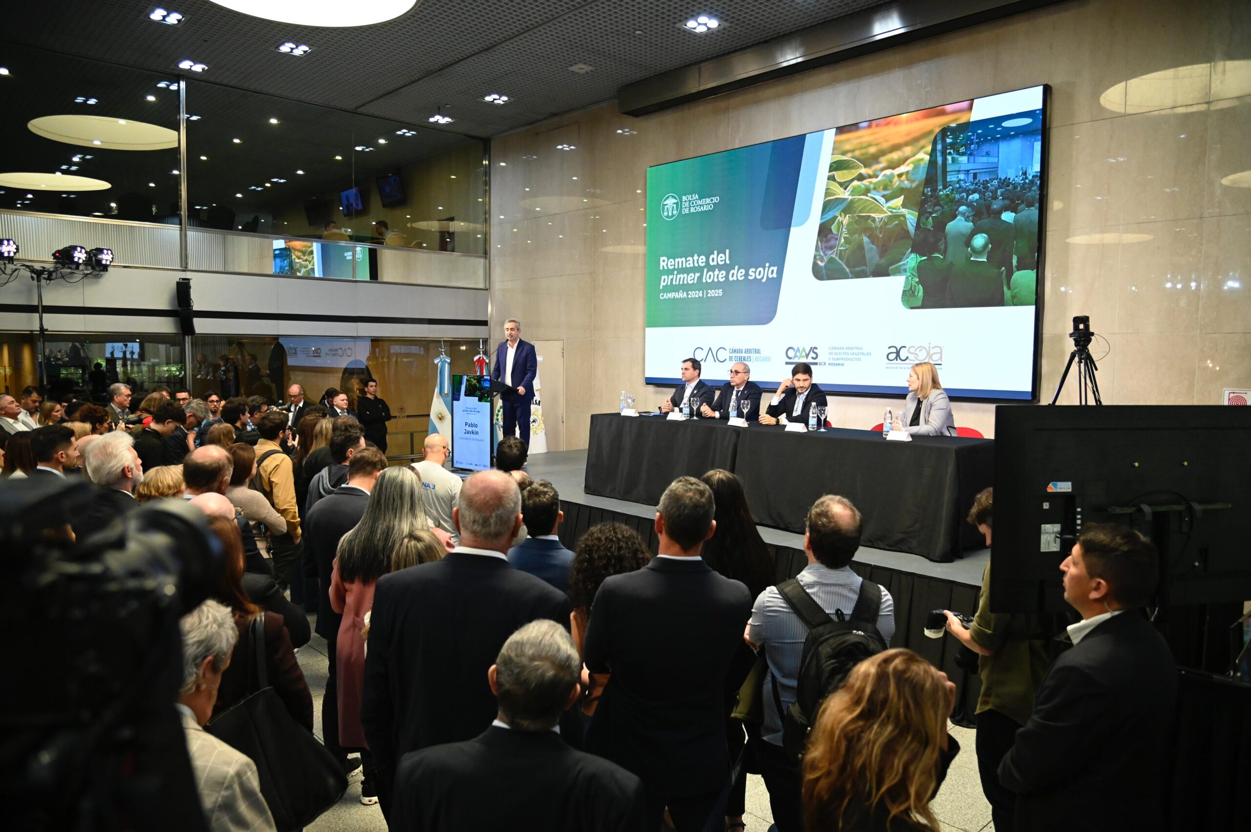 La tradicional subasta que se realiza en el recinto de operaciones de la Bolsa de Comercio de Rosario (BCR) fija el hito que da inicio a la comercialización de la nueva campaña de la oleaginosa.