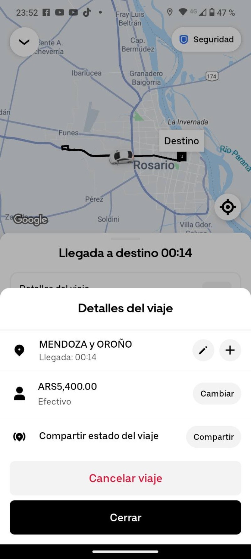 Una joven rosarina vivió un momento de extrema tensión el último domingo por la noche cuando el chofer de un viaje solicitado por la aplicación Uber desvió su recorrido y tomó la autopista en dirección a Roldán, pese a que el destino marcado era Mendoza y Oroño.
