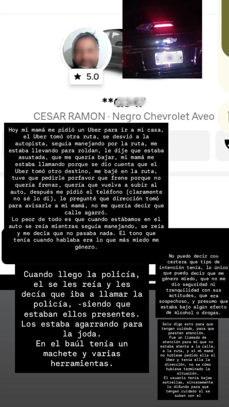 Tras la repercusión del caso, Uber confirmó que el conductor cumplía con los requisitos para manejar, pero fue inhabilitado de forma preventiva mientras la empresa realiza una investigación interna. “Estamos a disposición de la Justicia y de las fuerzas de seguridad para colaborar con la información que requieran”, informaron desde la compañía.
