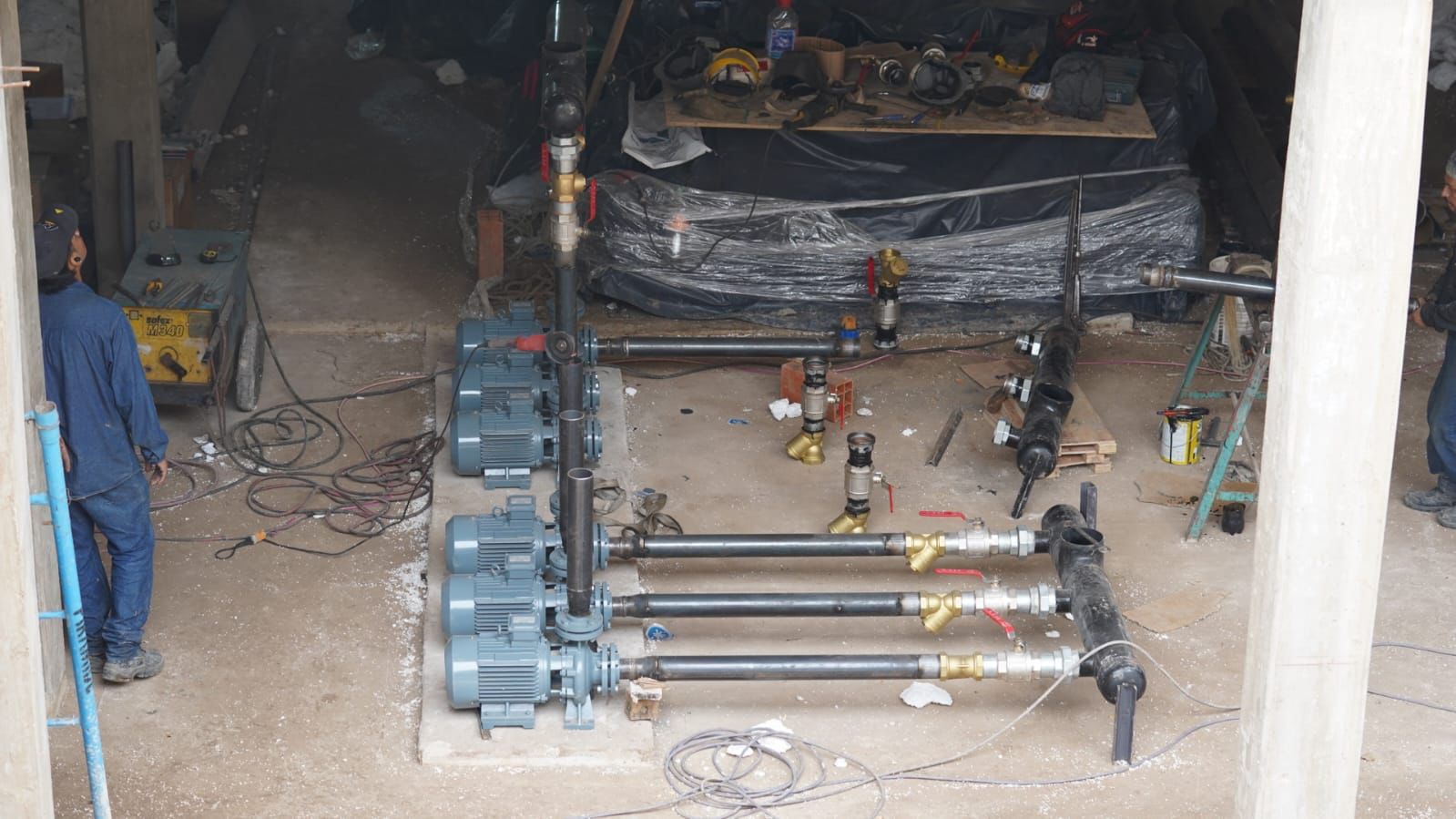 A la par de estos trabajos en la nave principal, la UT Mundo-Pirámide, a cargo de la obra, también desarrolla tareas en el subsuelo donde se avanza con el sistema hidráulico que permitirá el correcto funcionamiento de las piletas. Entre otras tareas, allí ya se colocaron los 7 filtros, y se montaron y armaron las calderas.