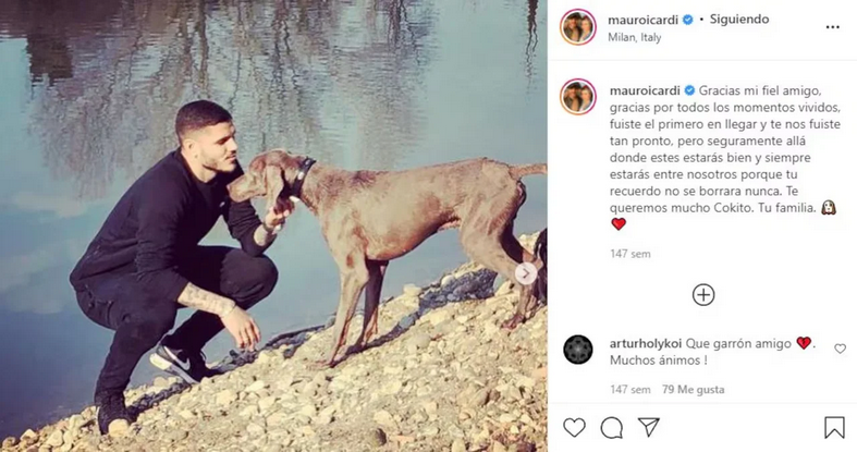 La mascota en cuestión sería Coco, un weimaraner color gris, que la familia adquirió en 2017 y murió dos años después. El futbolista había lamentado la muerte de su perro en el 2019 y le dedicó un sentido posteo en sus redes sociales.