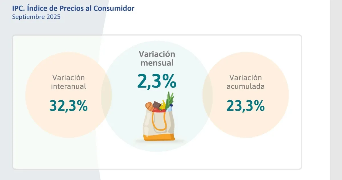 En los primeros nueve meses del año, los precios acumulan un incremento del 23,3%, mientras que la variación interanual —es decir, comparando con septiembre de 2024— fue del 33,7%. Aunque el dato muestra una desaceleración respecto al año pasado, el desafío inflacionario sigue siendo significativo de cara al cierre de 2025.