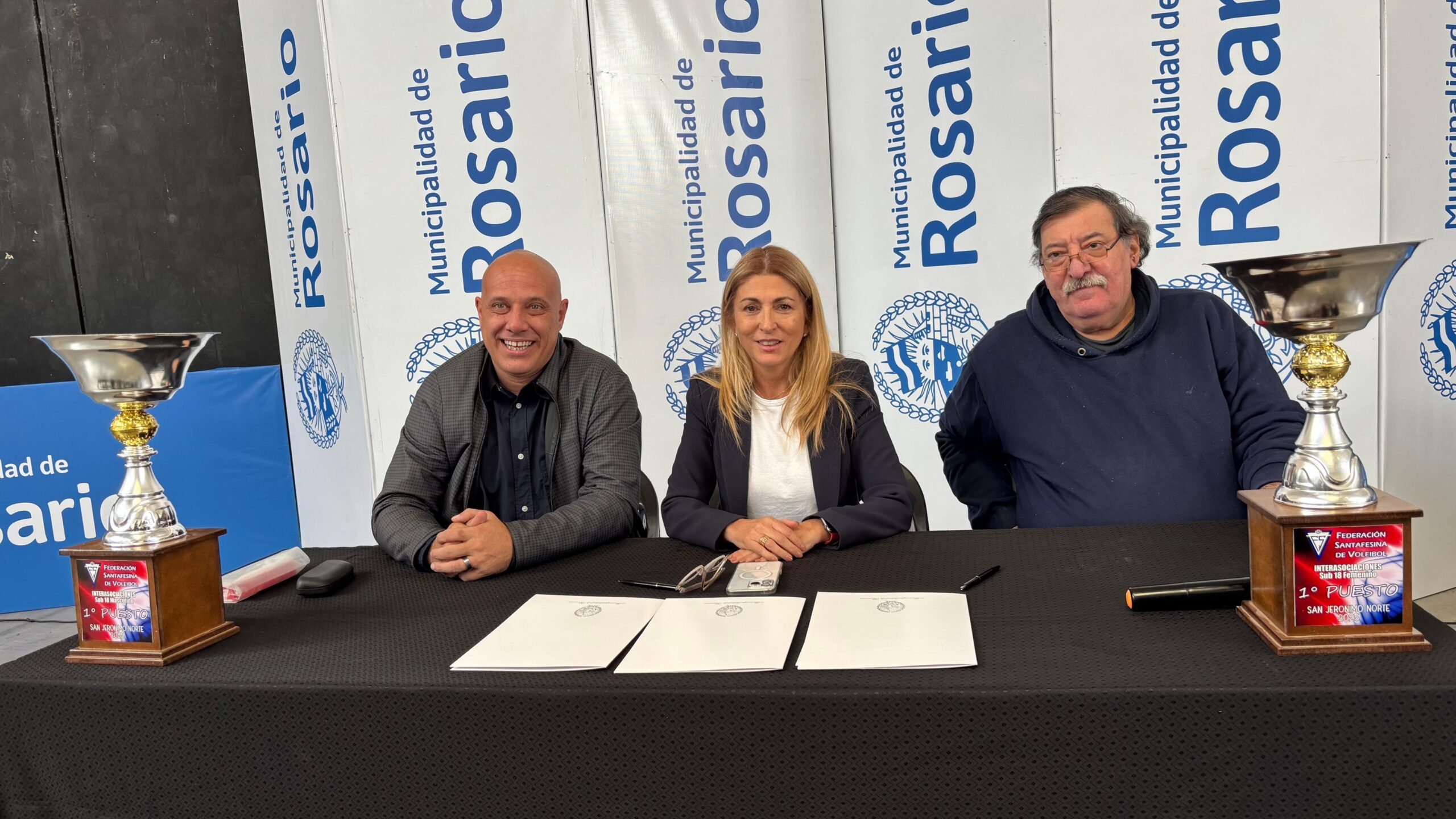 “Firmamos un convenio con la Asociación de Voleibol de Rosario para el uso compartido del Polideportivo Hipólito Yrigoyen, y van a tener prioridad de utilizar el salón de usos múltiples. Se comprometieron a llevar adelante una serie de obras que van a poner en valor este espacio para que se puedan jugar partidos oficiales», explicó Alejandra Mattheus, secretaria de Deporte y Turismo de la Municipalidad. Y agregó: «Es muy importante que estos lugares se puedan utilizar para un uso compartido. Nos permiten poner en valor, hacer un esfuerzo compartido entre la dirigencia deportiva y el Estado municipal”.