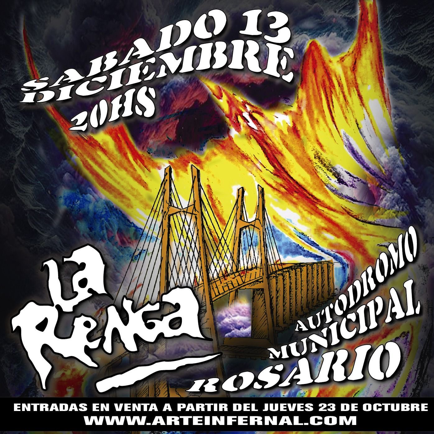 La novedad fue confirmada por el productor José Palazzo, quien también informó que las entradas estarán disponibles desde el jueves 23 de octubre a través del sitio oficial www.arteinfernal.com