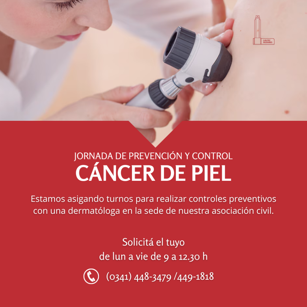 La asociación civil Lalcec Rosario llevará adelante jornadas de prevención del cáncer de piel el próximo lunes 17 y miércoles 19 de noviembre. Quienes quieran acceder a turnos para realizarse el control ya pueden comunicarse a los teléfonos de la asociación civil.
