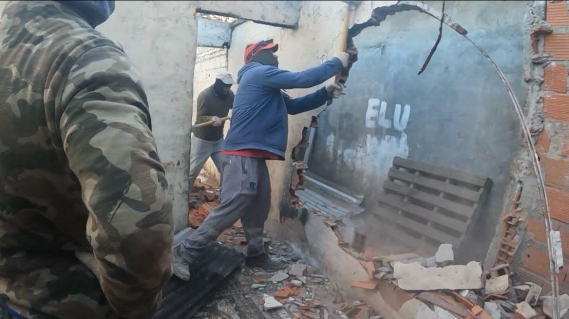 El secretario de Seguridad Pública del Ministerio de Justicia y Seguridad de Santa Fe, Omar Pereira, junto a la fiscal Natalia Benvenuto, supervisaron el derribo de un puesto de venta de estupefacientes realizado este viernes en Misiones al 100, de la localidad de Puerto General San Martín, en el departamento San Lorenzo.