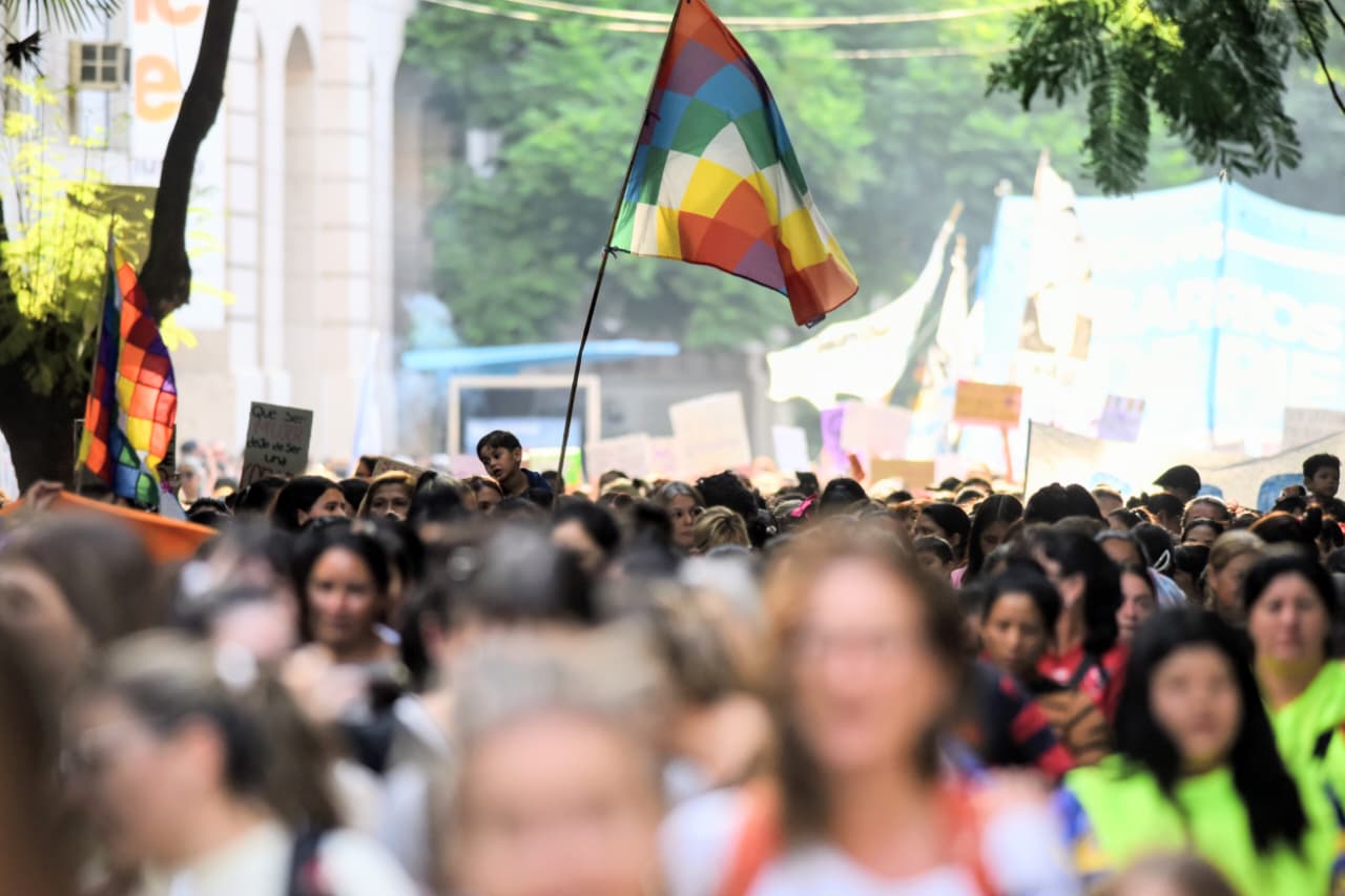 La convocatoria comenzó en la plaza San Martín y culminó en el Parque Nacional a la Bandera, con una columna que se extendió por unas diez cuadras y que volvió a mostrar una amplia participación de mujeres y disidencias de distintos espacios sociales y políticos.