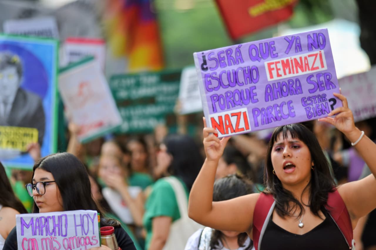 El contexto político, económico y social estuvo muy presente durante toda la marcha, con consignas críticas hacia el gobierno del presidente Javier Milei.