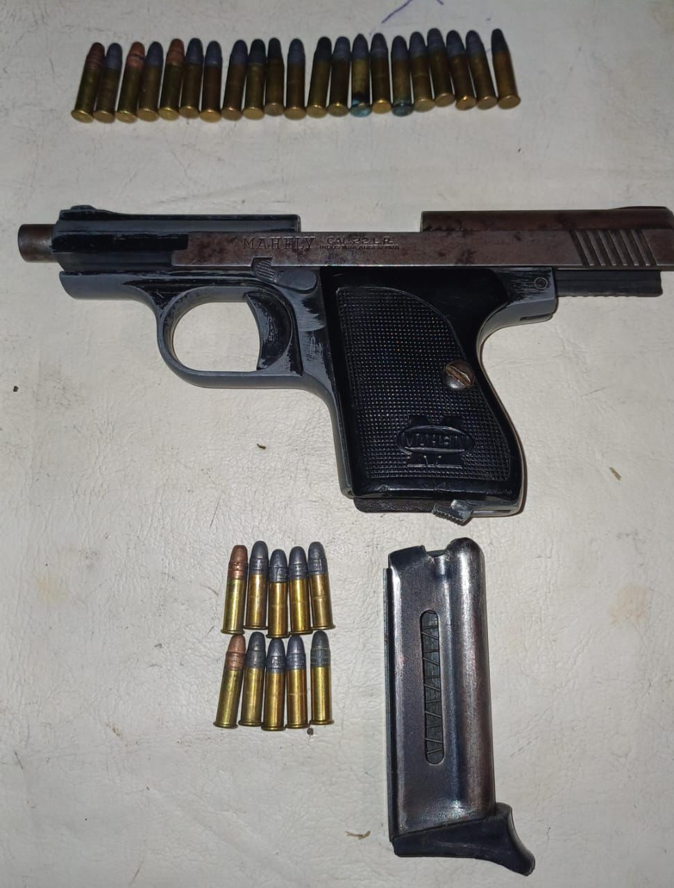 Los agentes secuestraron droga que estaba enterrada en un cantero que presentaba tierra recientemente removida. Y también hallaron la pistola calibre 22 escondida en un aire acondicionado.