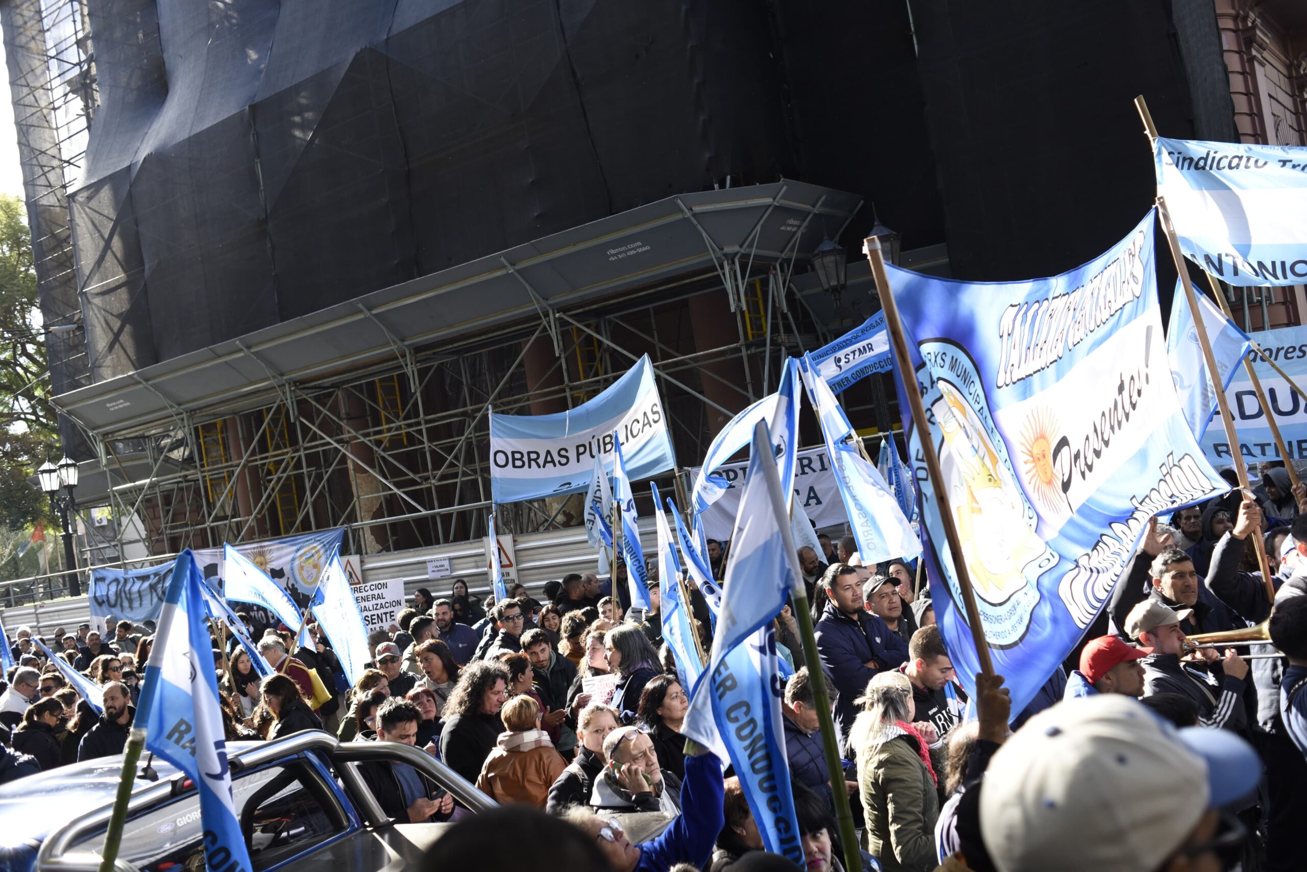 Grupo de trabajadores se manifestó para rechazar el aumento salarial dispuesto por decreto. La medida de fuerza sería miércoles 28 y jueves 29